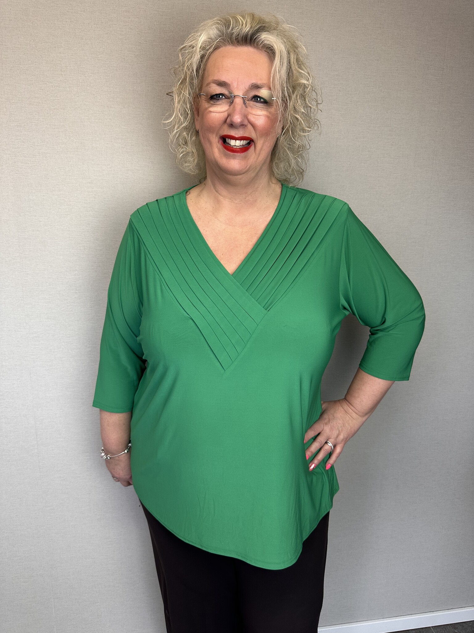 Deze tuniek van Magna Fashion valt soepel en heeft een losvallende pasvorm. Deze tuniek is beschikbaar in verschillende kleuren. Gemaakt van een luchtige stof dat zorgt voor een fijn draagcomfort. De tuniek is afgewerkt met een V-hals met plooidetail, schoudervullingen en driekwart mouwen. Een elegant tuniek dat leuk te combineren is met een broek!