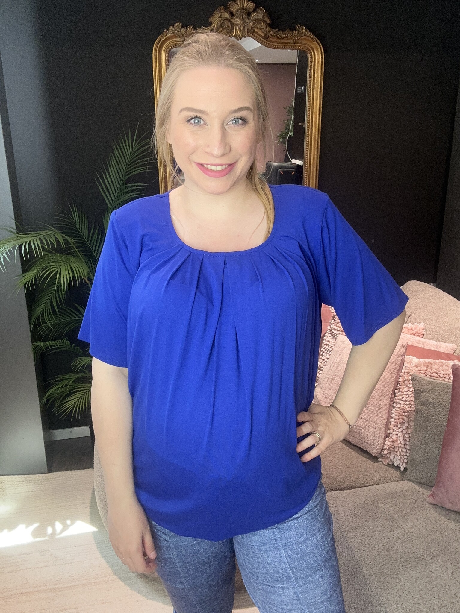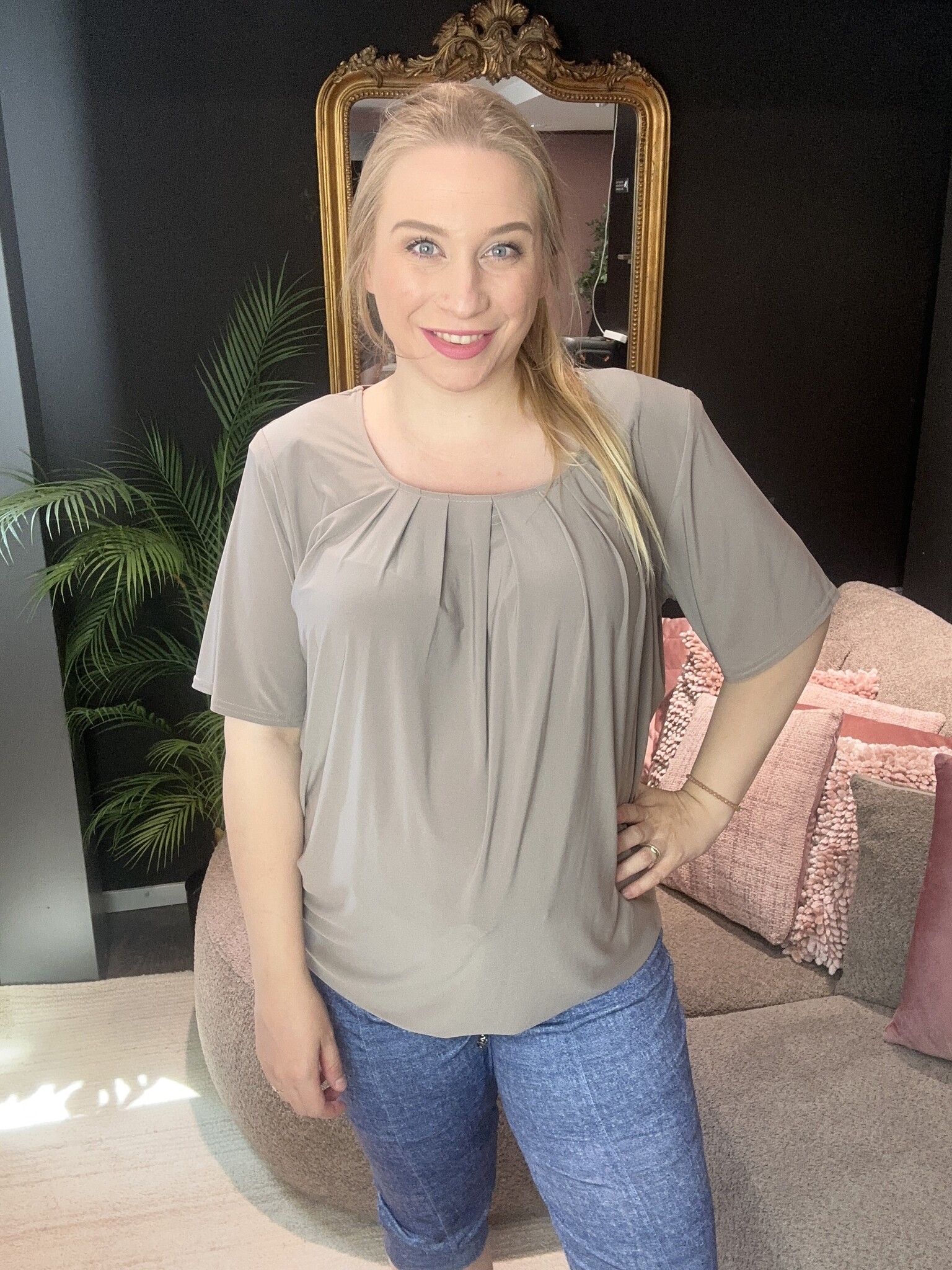 Mooi met elastiekje onder in de blous, zo valt hij mooi over de buik.