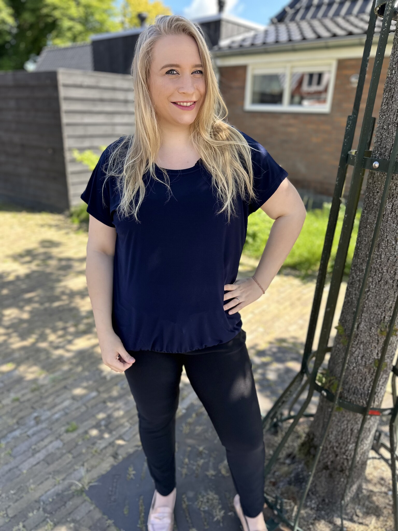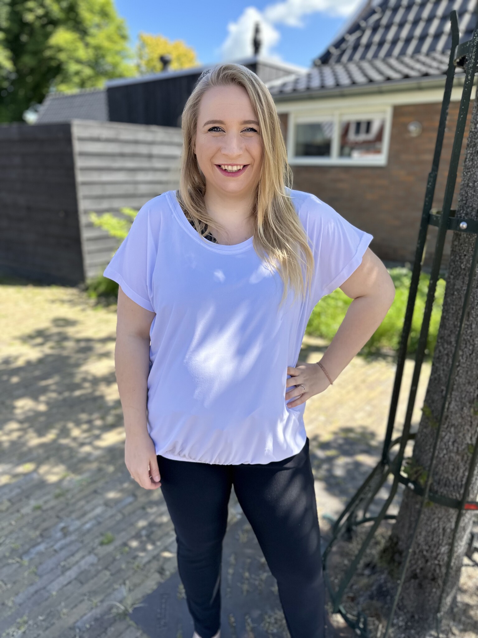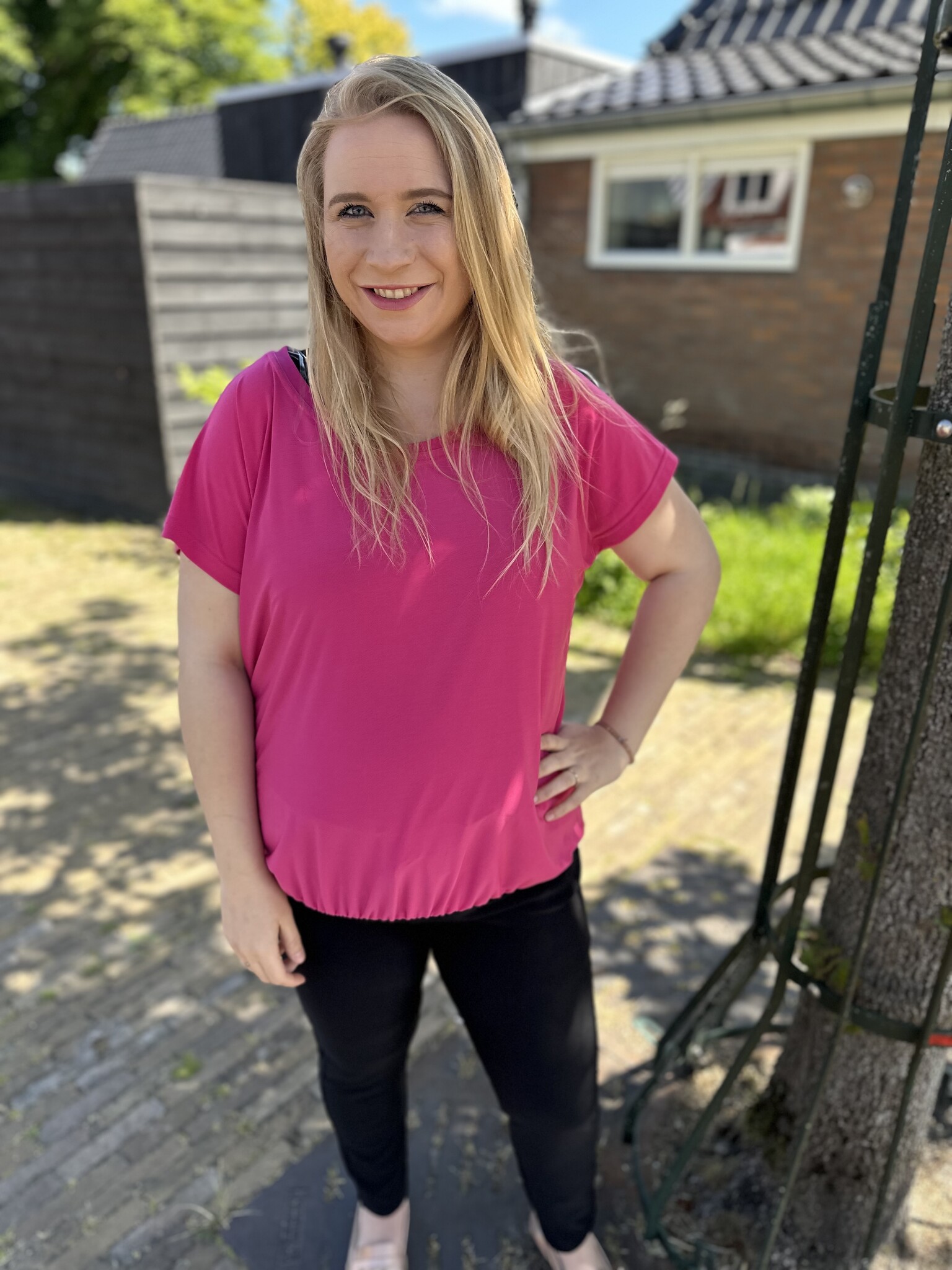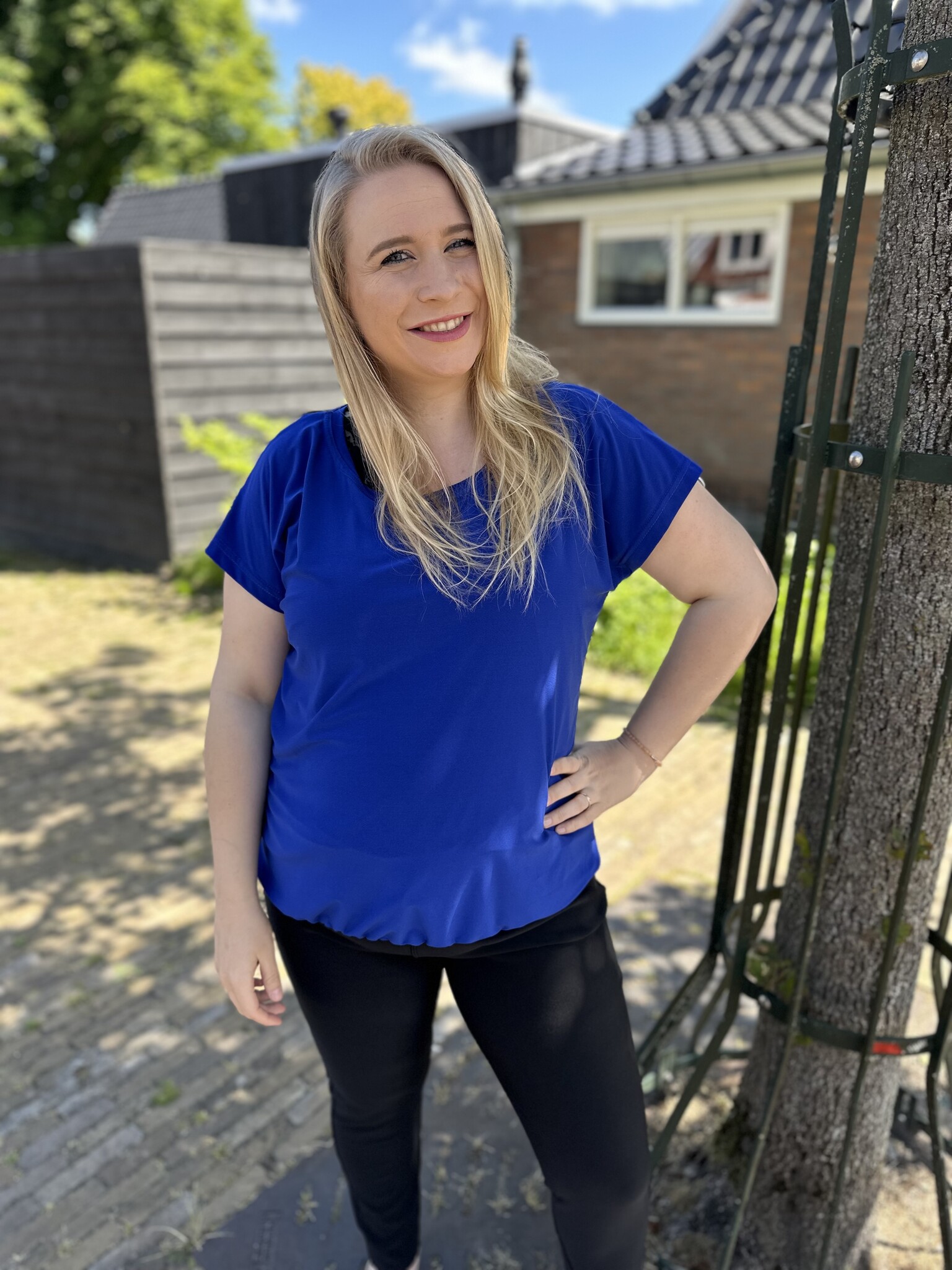 Magna Fashion- Deze geweldige basic blouse mag absoluut niet ontbreken in jouw kast! De blouse heeft een mooie ronde hals en een elastiek aan de onderkant en een fijne korte mouw. Uitgevoerd effen kleuren, perfect om te combineren met een printje!