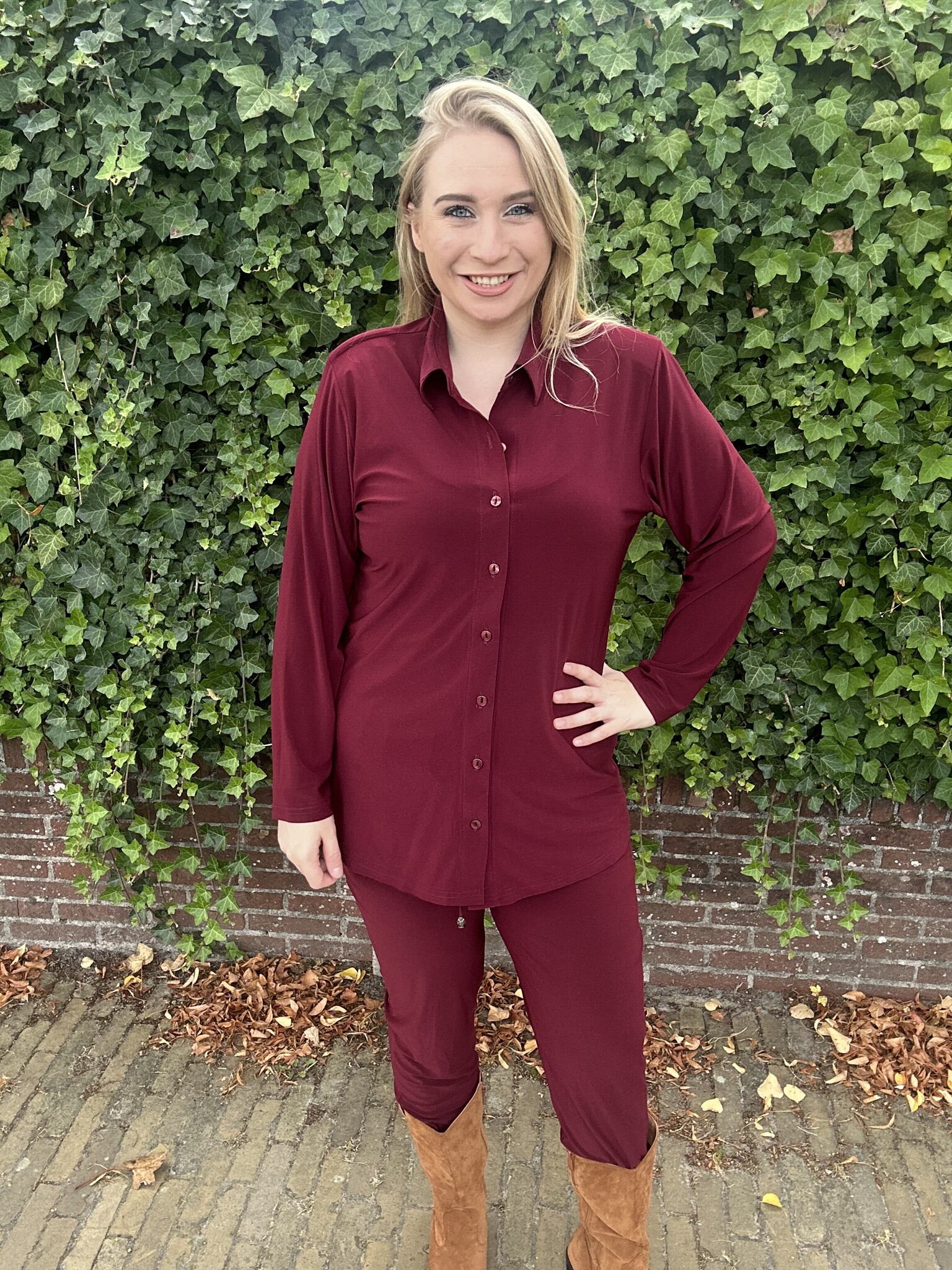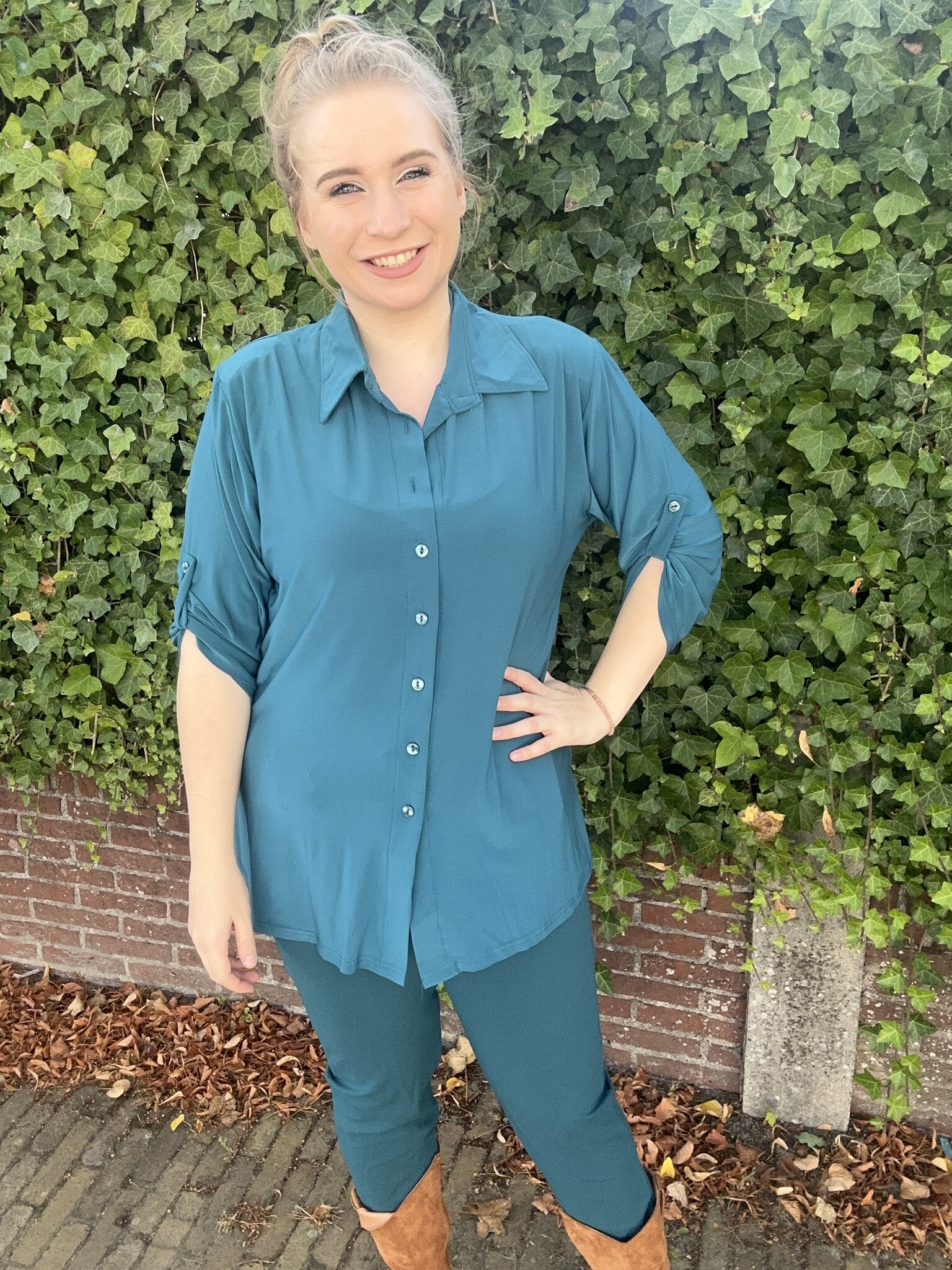 Magna Fashion - Super leuke effen doorknoopblouse. De blouse heeft lange mouwen en een v-hals. De blouse valt op maat.