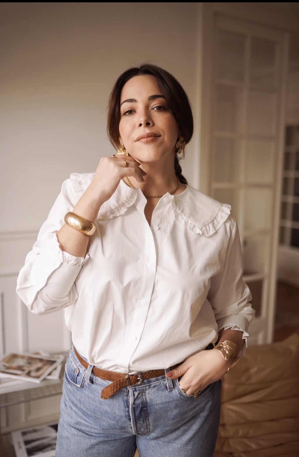 Blouse Inge is een witte blouse met een romantische grote kraag en subtiele ruches. De blouse heeft lange mouwen met knoopsluiting en ruches en een rechte, losvallende pasvorm. Door het katoen voelt de blouse comfortabel en luchtig aan. Je combineert deze blouse leuk met een jeans of nette broek voor een vrouwelijke look.