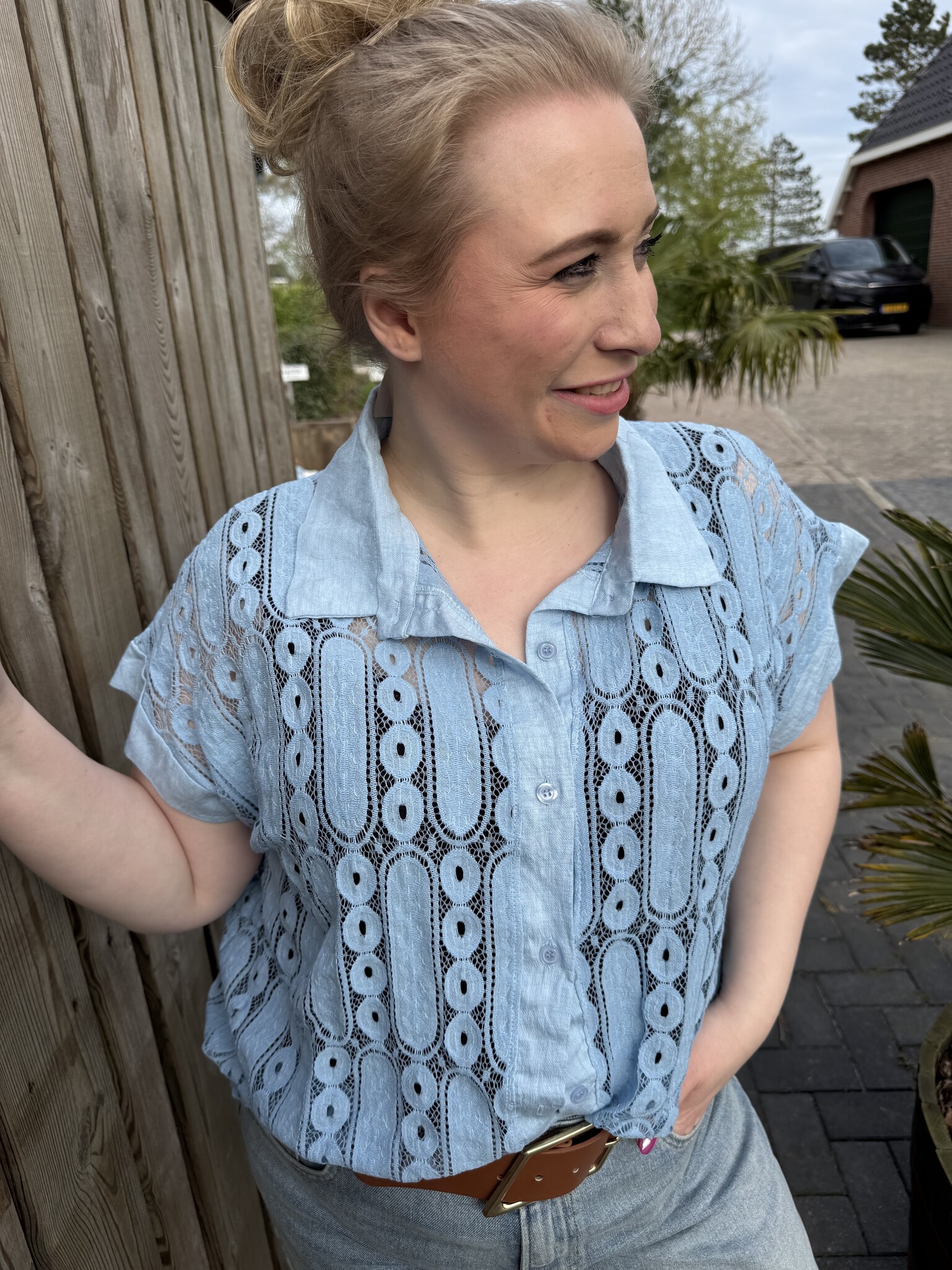 Wat een casual chique blouse! Deze blouse met kant van Beautyvol valt mooi en heeft een normale pasvorm. De blouse is beschikbaar in meerdere kleuren. De blouse is afgewerkt met een knoopsluiting en korte mouwen. Een casual chique blouse die leuk te combineren is met een broek!