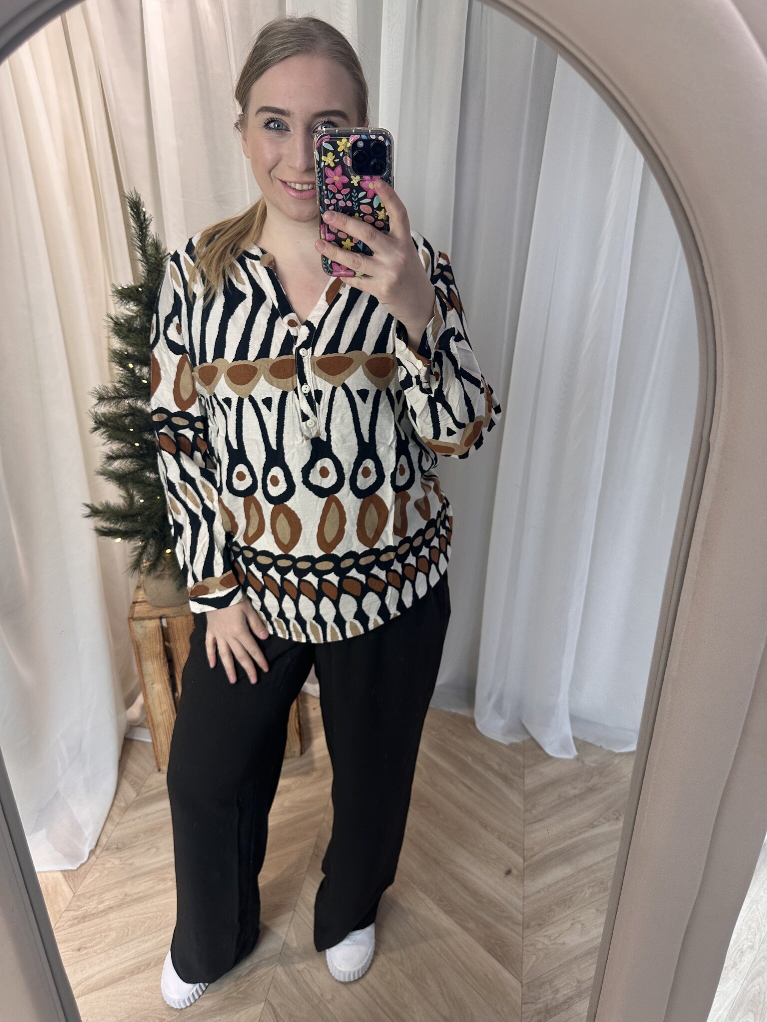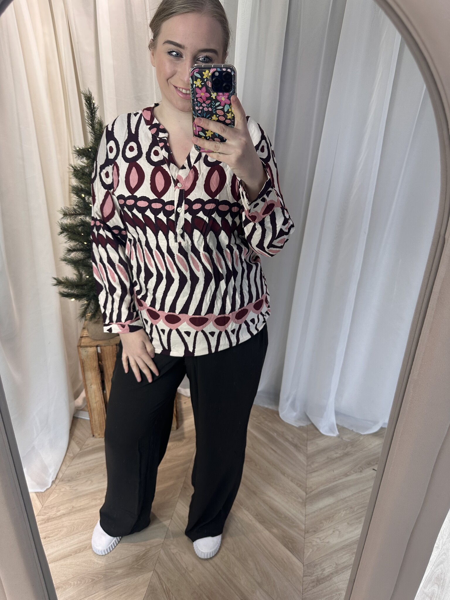 Deze super leuke blouse is een echte aanwinst voor je garderobe! De blouse valt goed op maat en heeft een heerlijk draagcomfort.