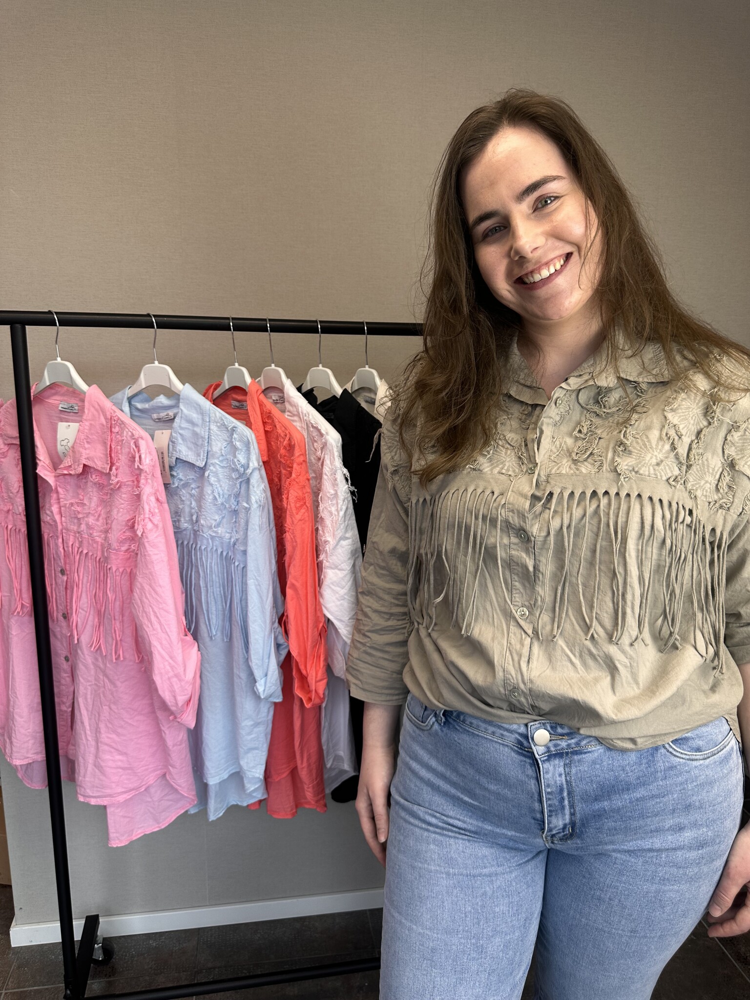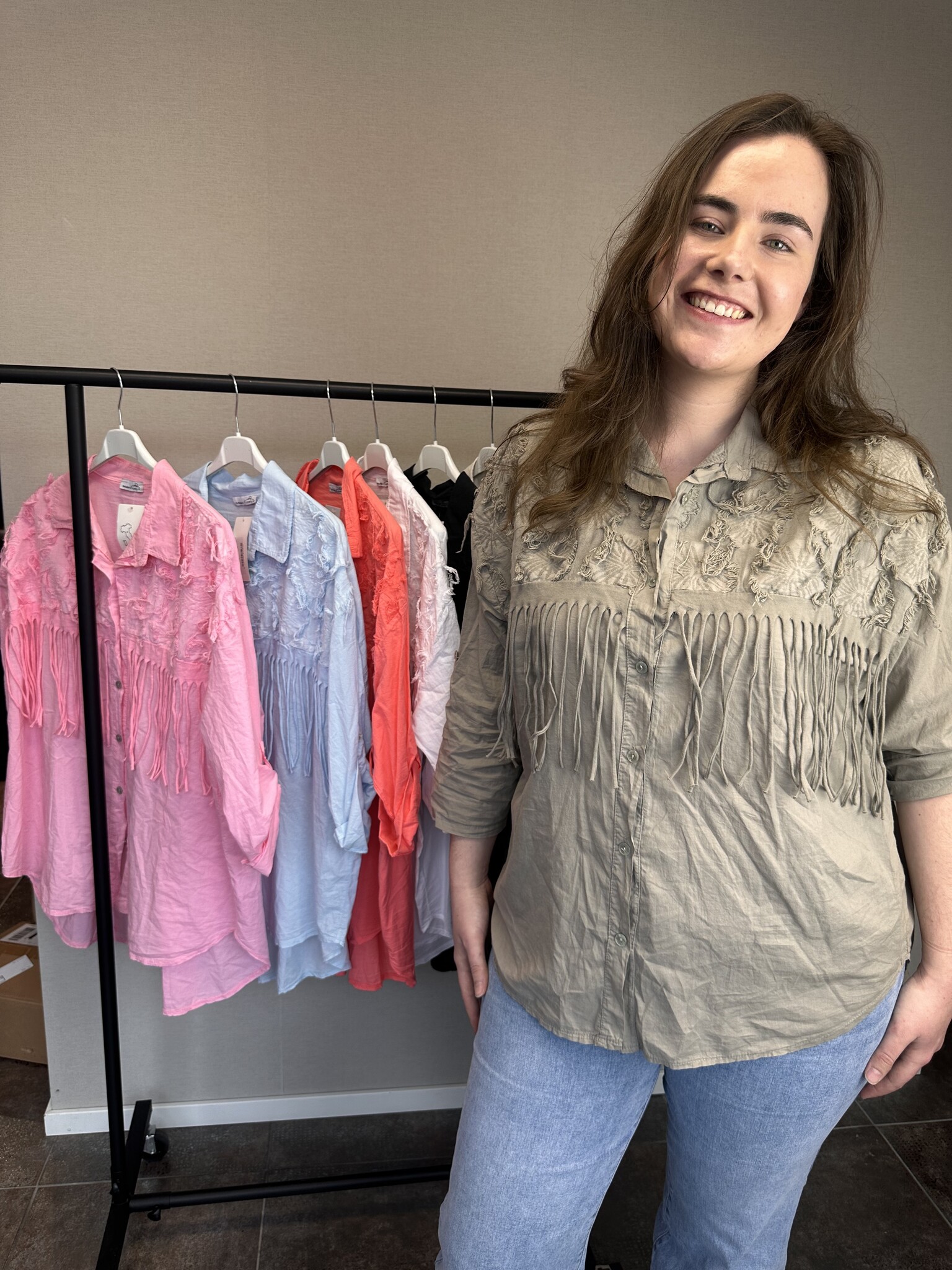 Op zoek naar een casual chique blouse? Deze blouse van Beautyvol hebben we in meerdere kleuren! de blouse heeft leuke franjes en een bloemenopdruk aan de bovenkant. Gemaakt van een luchtige stof voor extra draagcomfort. Afgewerkt met knoopsluiting en 3/4 mouwen. Met een blazer krijgt de blouse een nog elegantere uitstraling!
