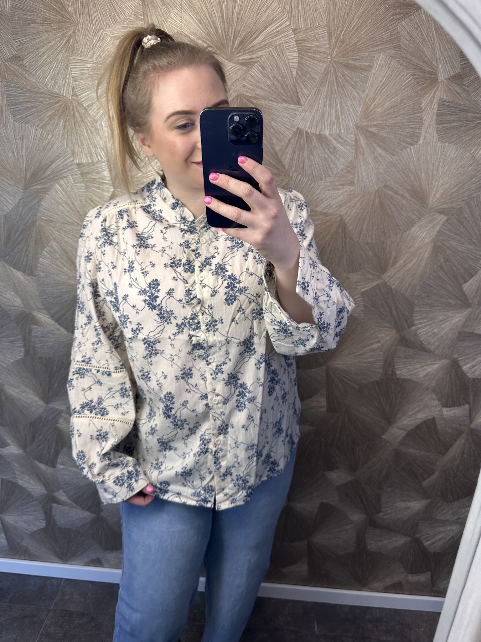 Deze mooie blouse Majorieke is voorzien van een prachtige print. Crème met een blauw bloemig print. Valt goed op maat.