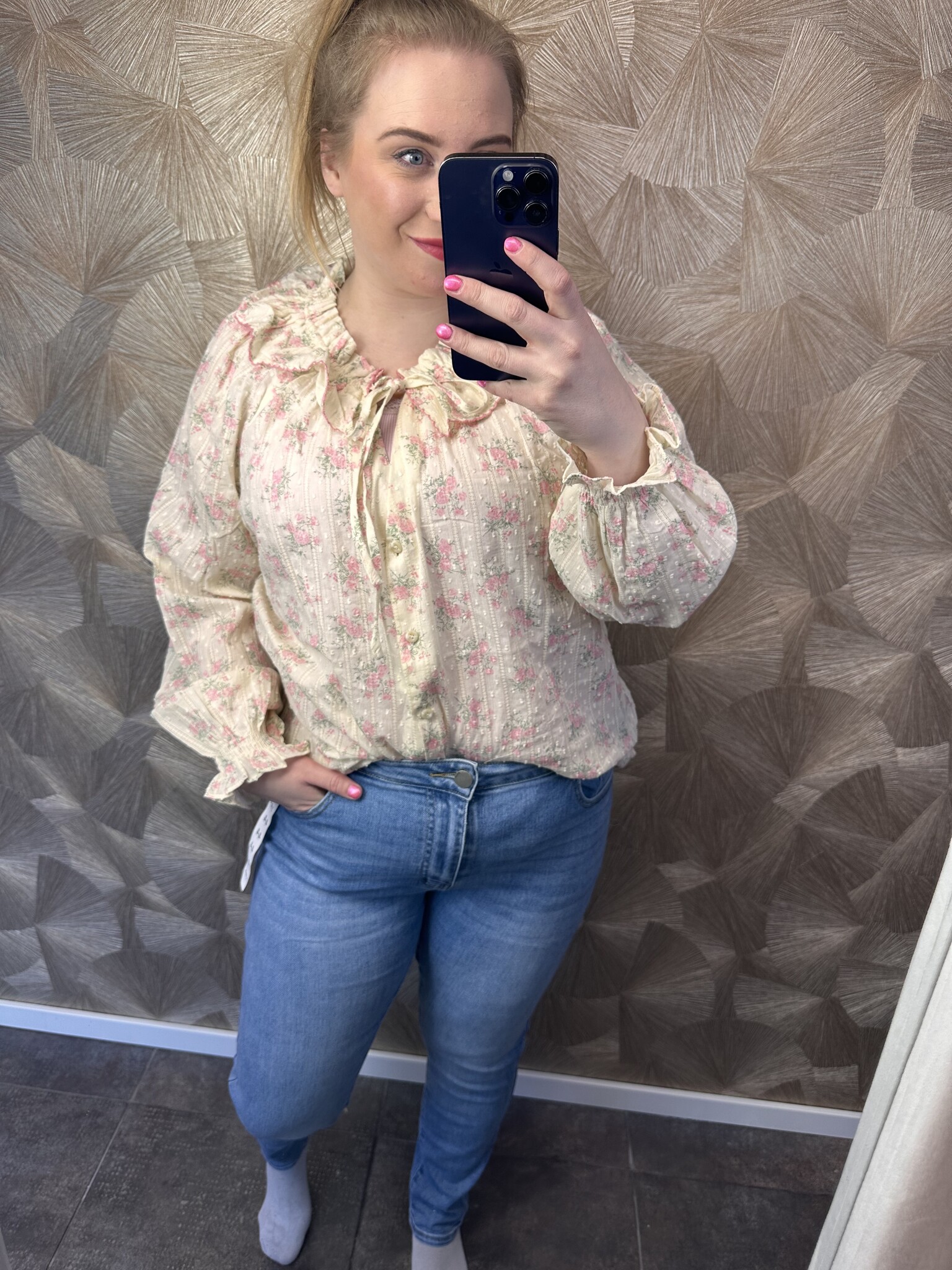 Deze sierlijke en mooie blouse Silke is voorzien van mesh met geborduurde bloemen. Wat een pareltje is dit! Valt goed op maat.