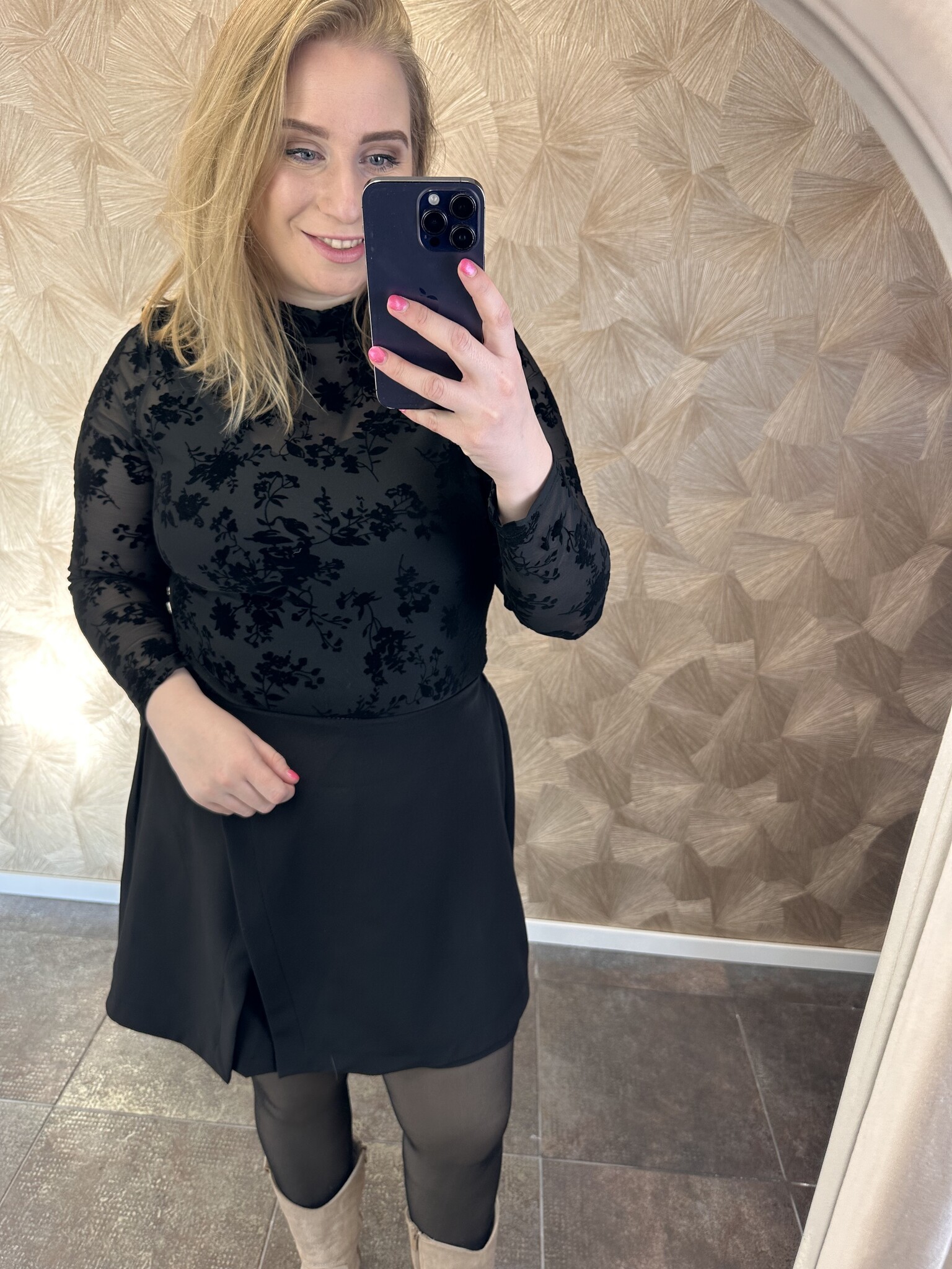 Beautyvol - Echt een geweldige body, Body Romeé. Leuk onder een blazer met een pantalon. Hij heeft een soort mesh-look met suede opdruk van een rozenprint. Dit zorg voor een elegante look.
