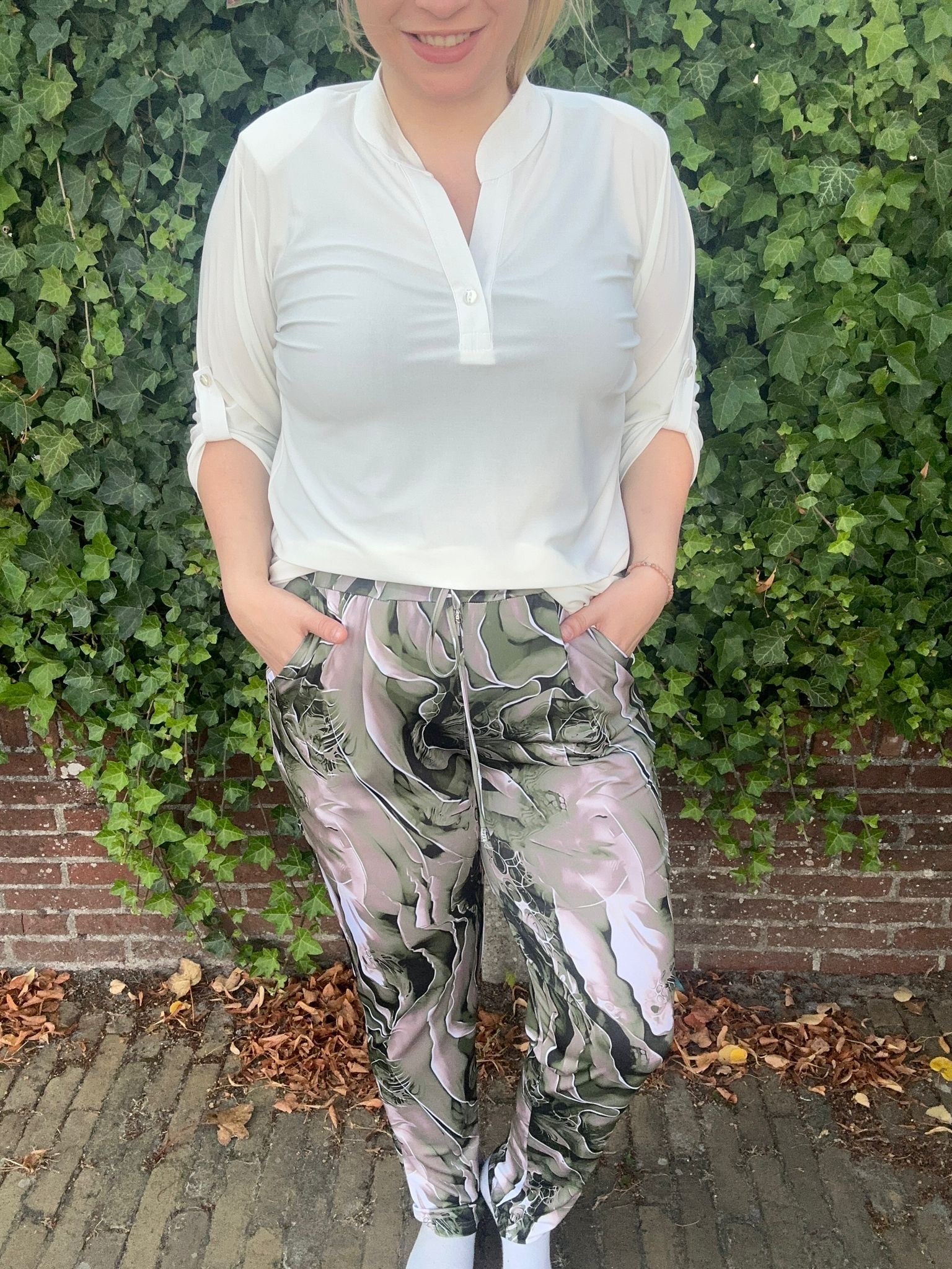 Magna Fashion - Een super fijne broek van het merk Magna Fashion in verschillende, prachtige kleuren met een mooie print verkrijgbaar. De broek heeft zakken en koort. De broek is gemaakt van een fijne stof en de broek valt goed op maat.