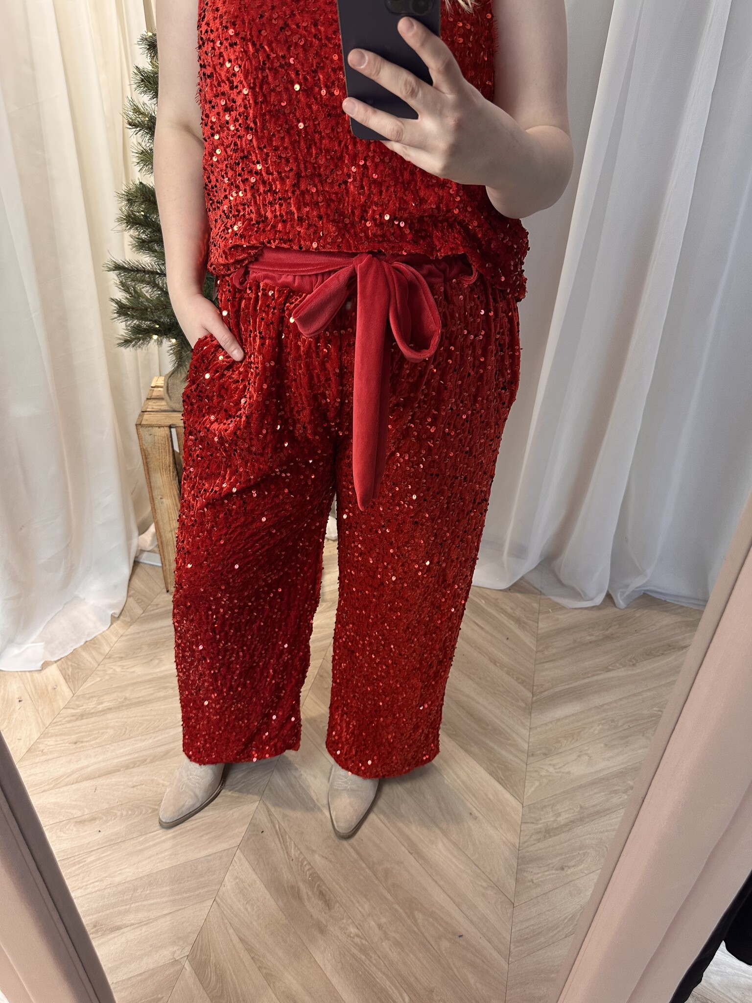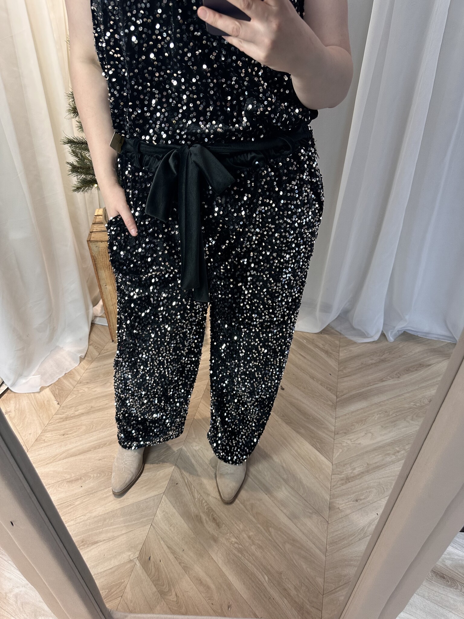 Beautyvol- Super gave broek, volledig voorzien van mooie pailletten. Door een velourse strik kan je de broek mooi tailleren. Te dragen van maar 44 tot maat 54.