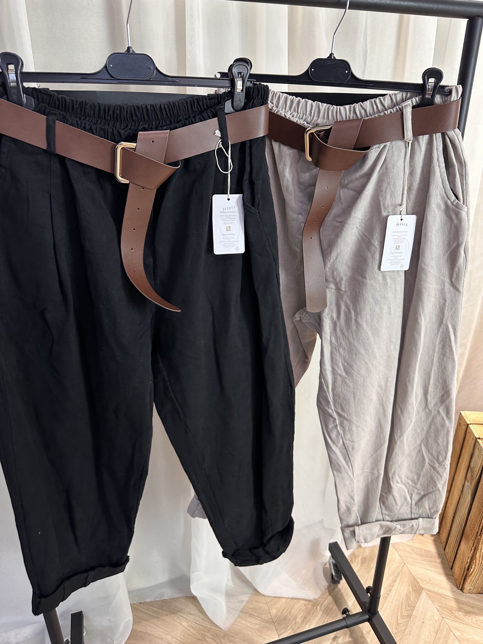 Super leuke broek met een lichte rib stof en riem, te dragen met maat 46 t/m 52.