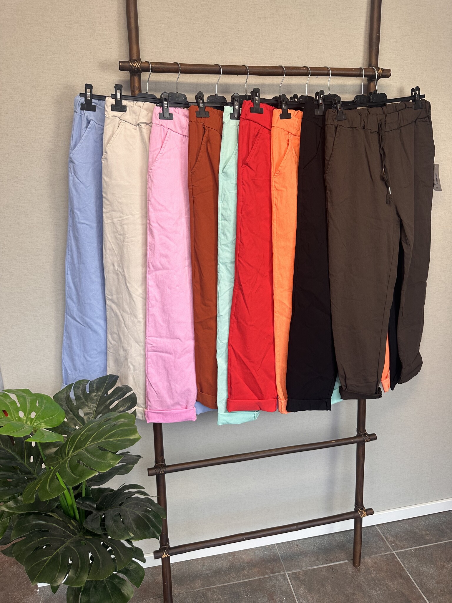 Deze broek van zit comfortabel en heeft een normale pasvorm. De broek is beschikbaar in meerdere kleuren. Gemaakt van een stretchy stof dat zorgt voor een fijn draagcomfort. De broek is afgewerkt met een elastische tailleband met strikkoord en steekzakken aan de voorkant. Op de achterkant zitten geen zakken. Een casual broek die leuk te combineren is met een blouse!