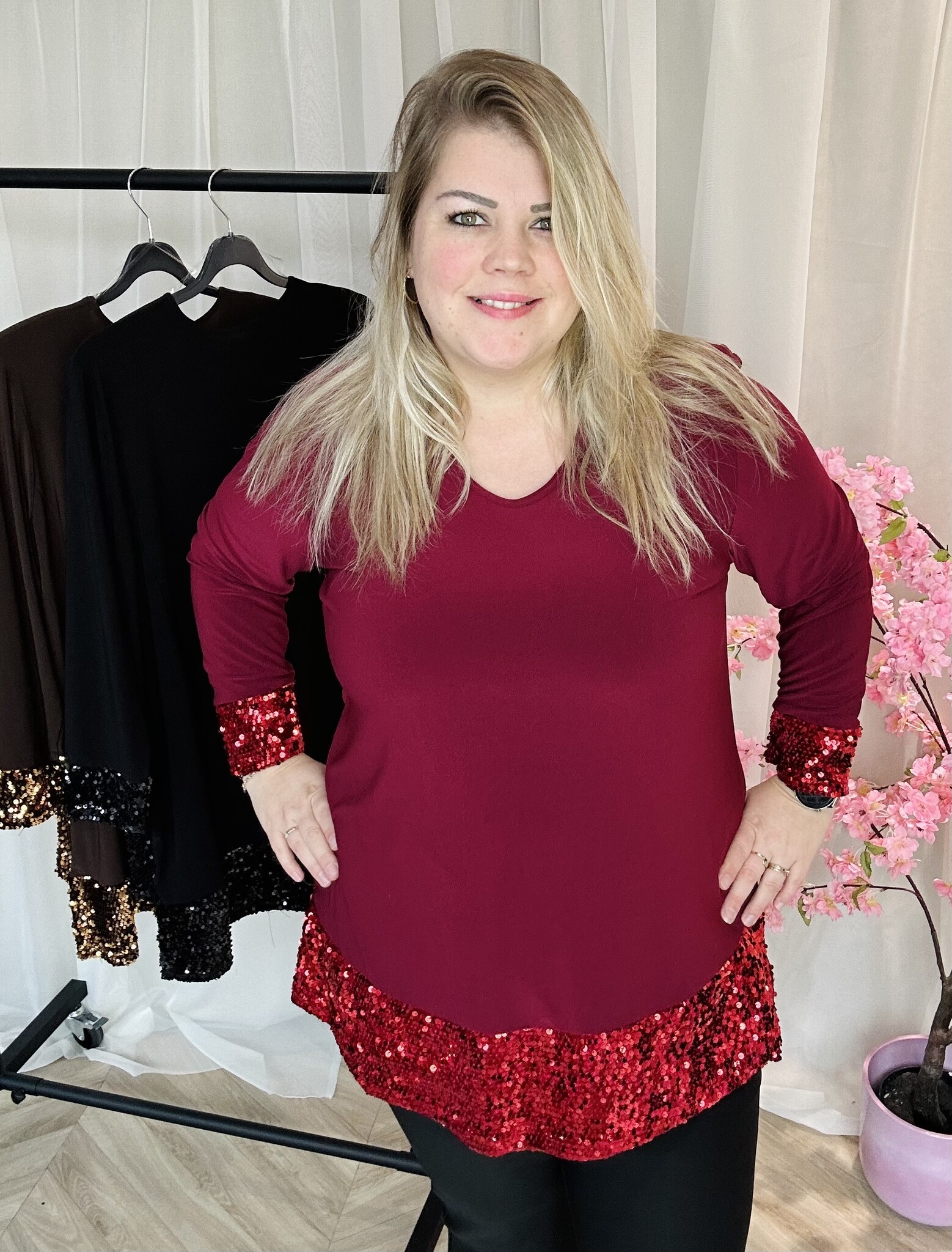 Shine in stijl met onze prachtige feestelijke tuniek, versierd met sprankelende pailletten. Perfect voor feestdagen, gelegenheden of een avondje uit. De soepele pasvorm valt elegant en geeft elke look een luxueuze uitstraling.