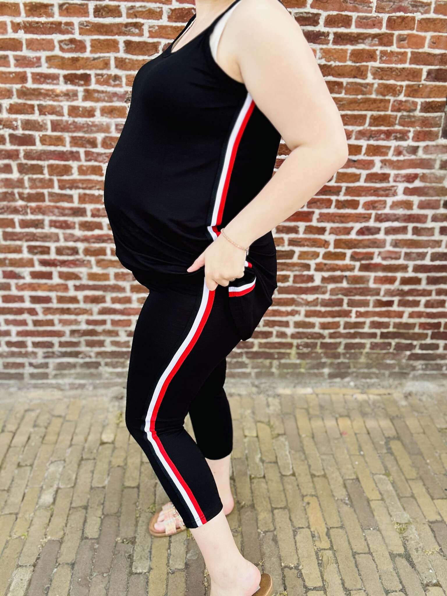 Magna Fashion - Super leuke legging in capri/driekwart model. De legging heeft een effen kleur met op de zijkant een leuke sportieve bies.