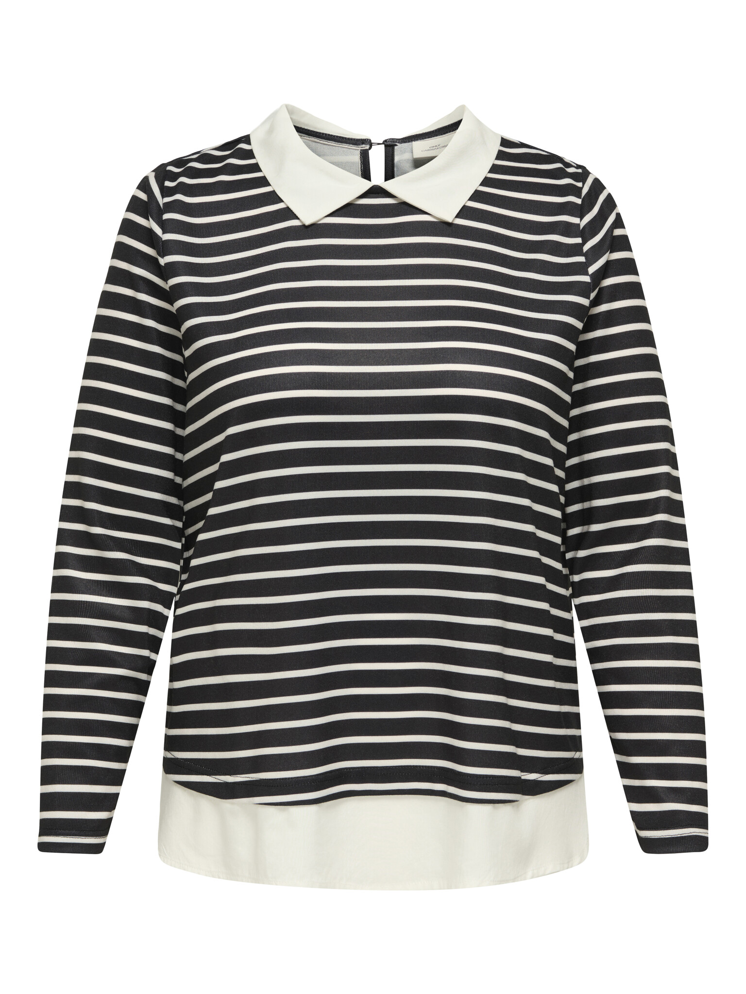Deze superleuke trui-blouse-combi van Only Carmakoma combineert het comfort van een trui met stijlvolle blousedetails. De pasvorm valt goed op maat.
