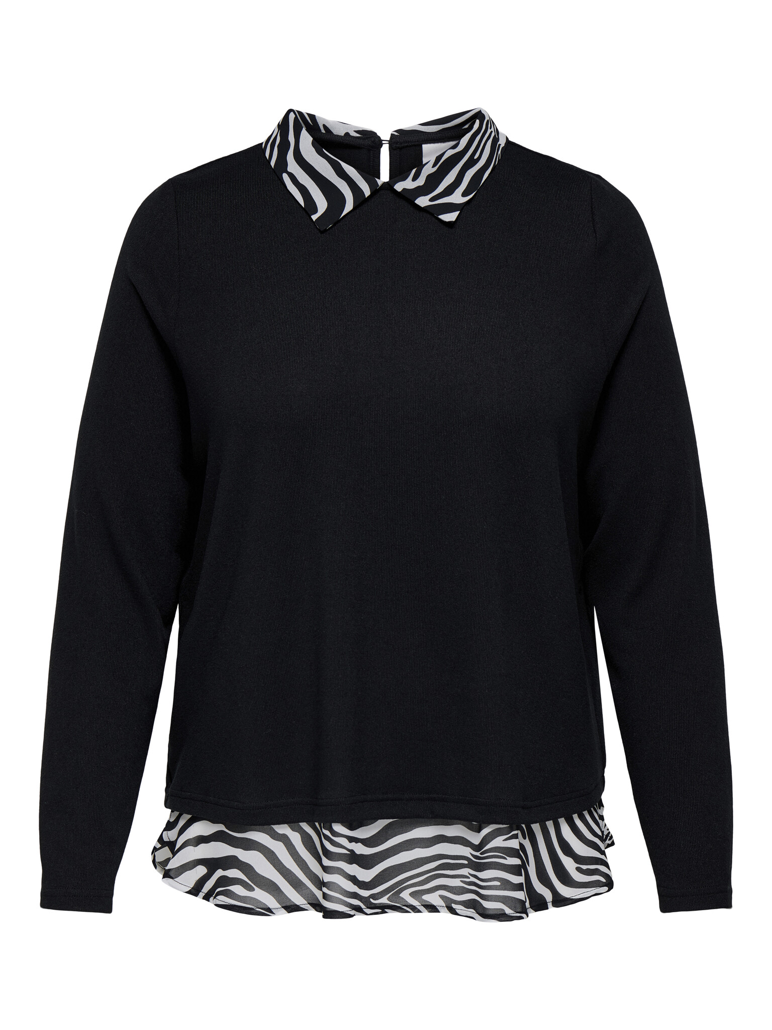 Deze superleuke trui-blouse-combi van Only Carmakoma combineert het comfort van een trui met stijlvolle blousedetails. De pasvorm valt goed op maat.