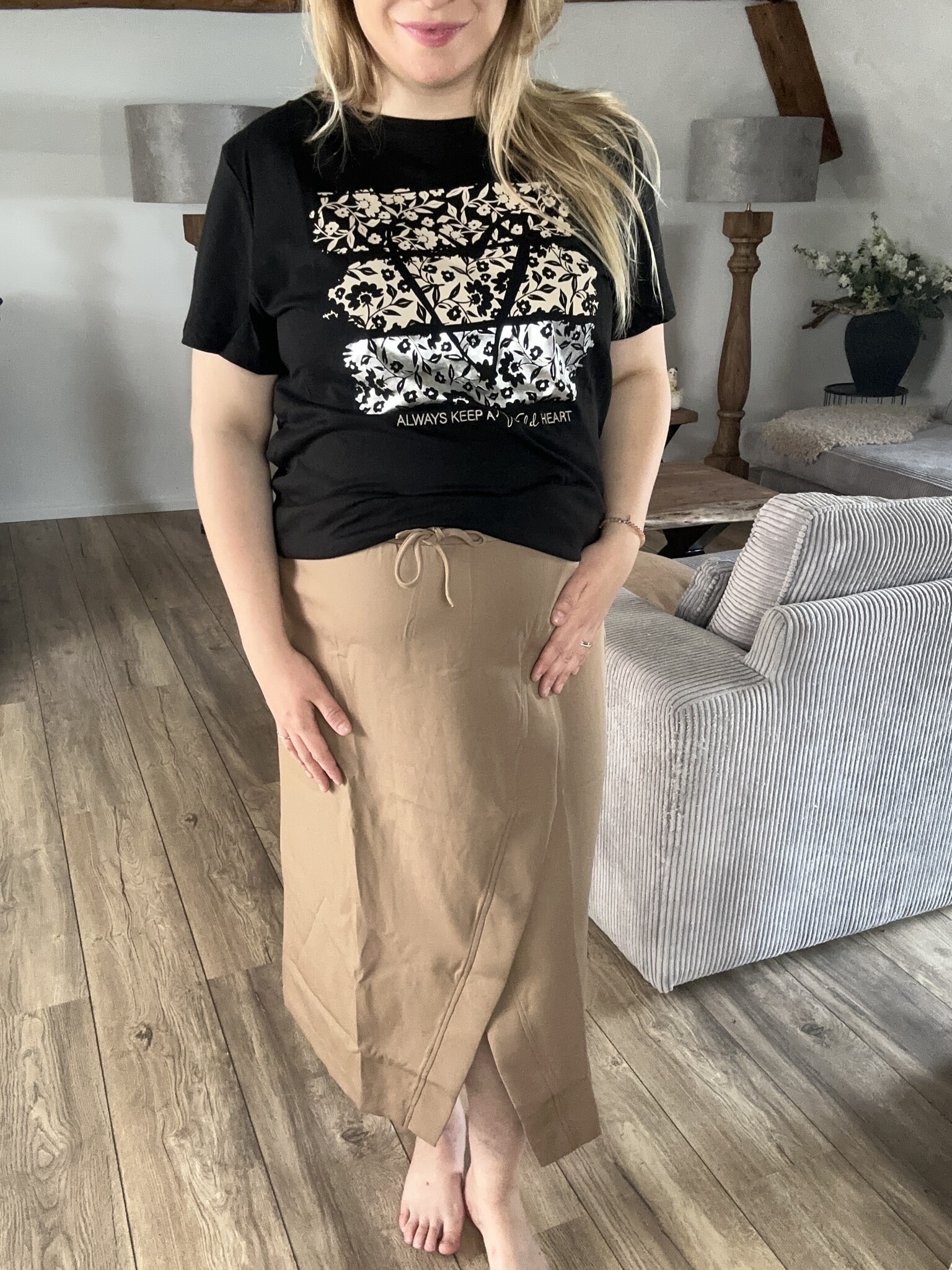 Only Carmakoma - Een prachtige split rok nieuw bij ons binnen. De rok heeft een prachtige cacao creme kleur en valt op maat.