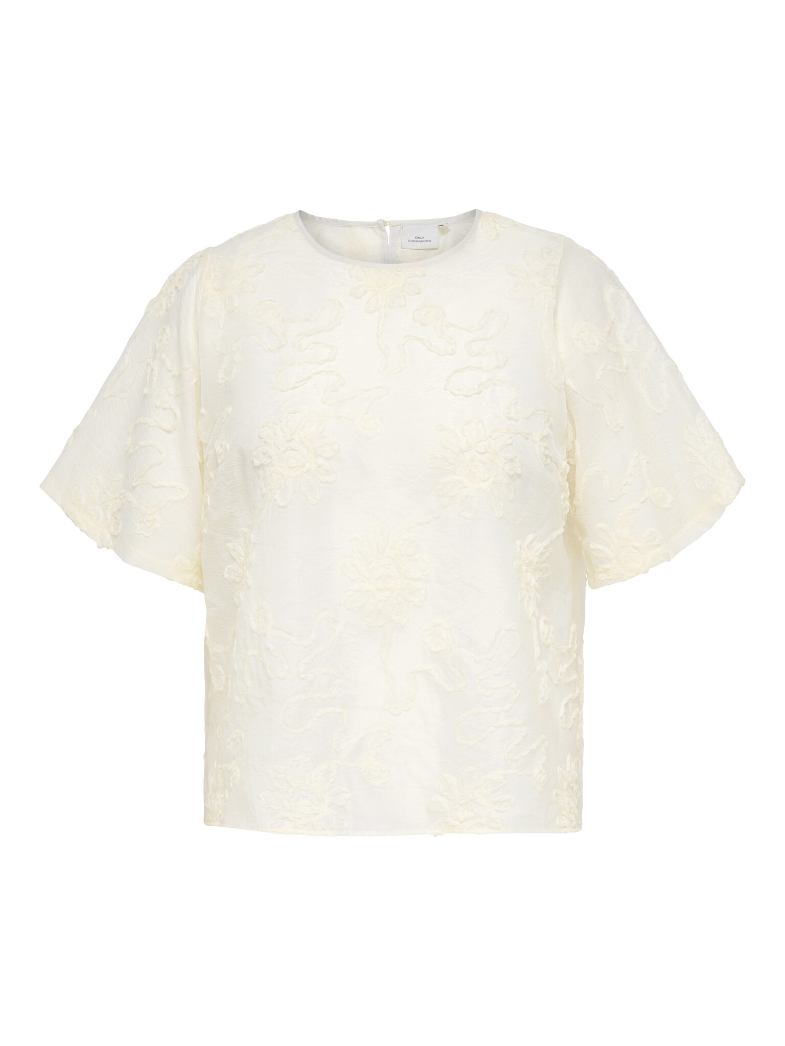 CARANILA 2/4 O-NECK DETAIL TOP WVN Cloud Dancer/Nila flowe