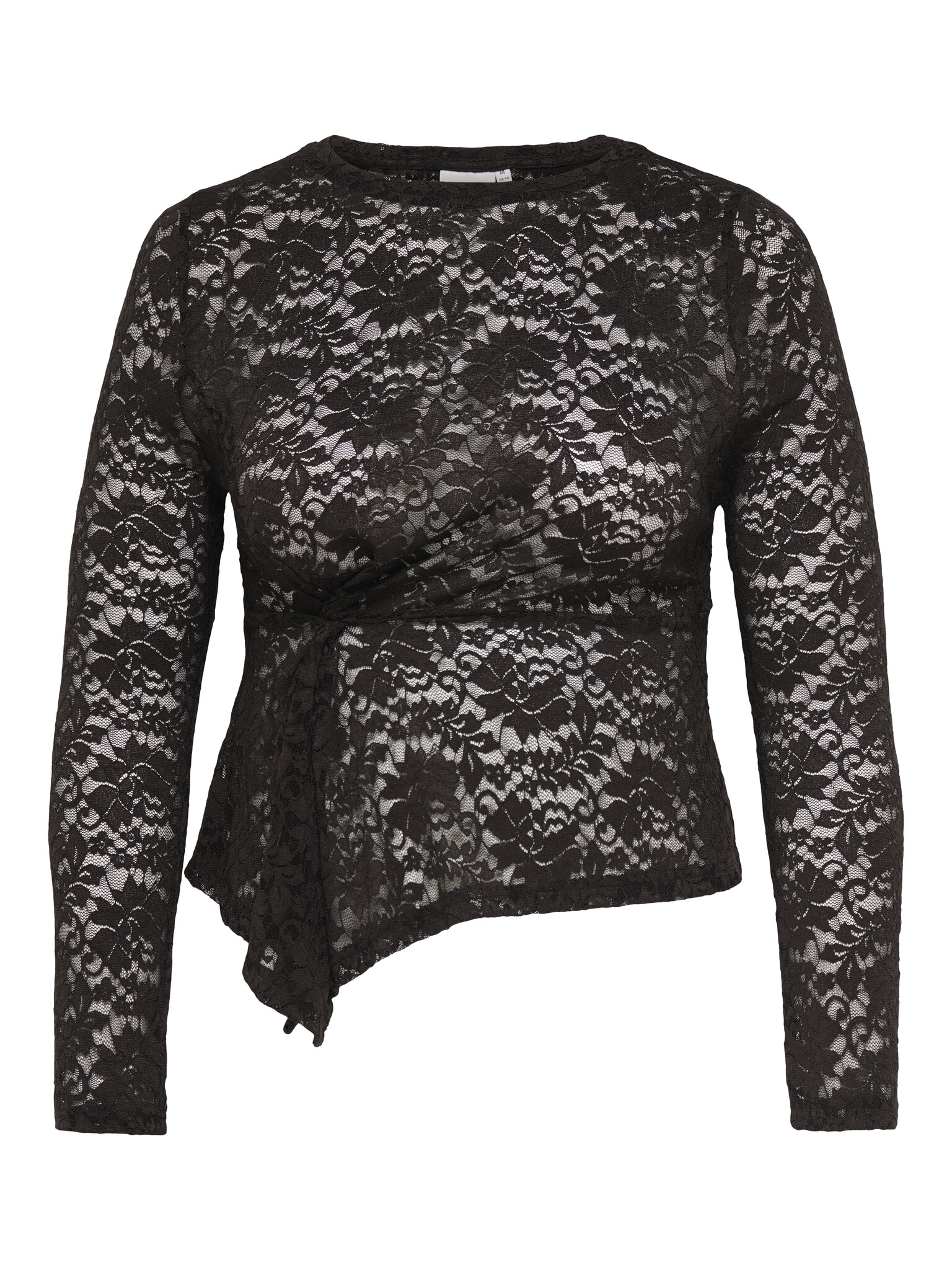 Deze kanten top van Only Carmakoma heeft een aansluitende pasvorm. Onder de borsten zit een geknoopt detail voor accent op de taille. Een chique top die leuk te combineren is met een pantalon!
