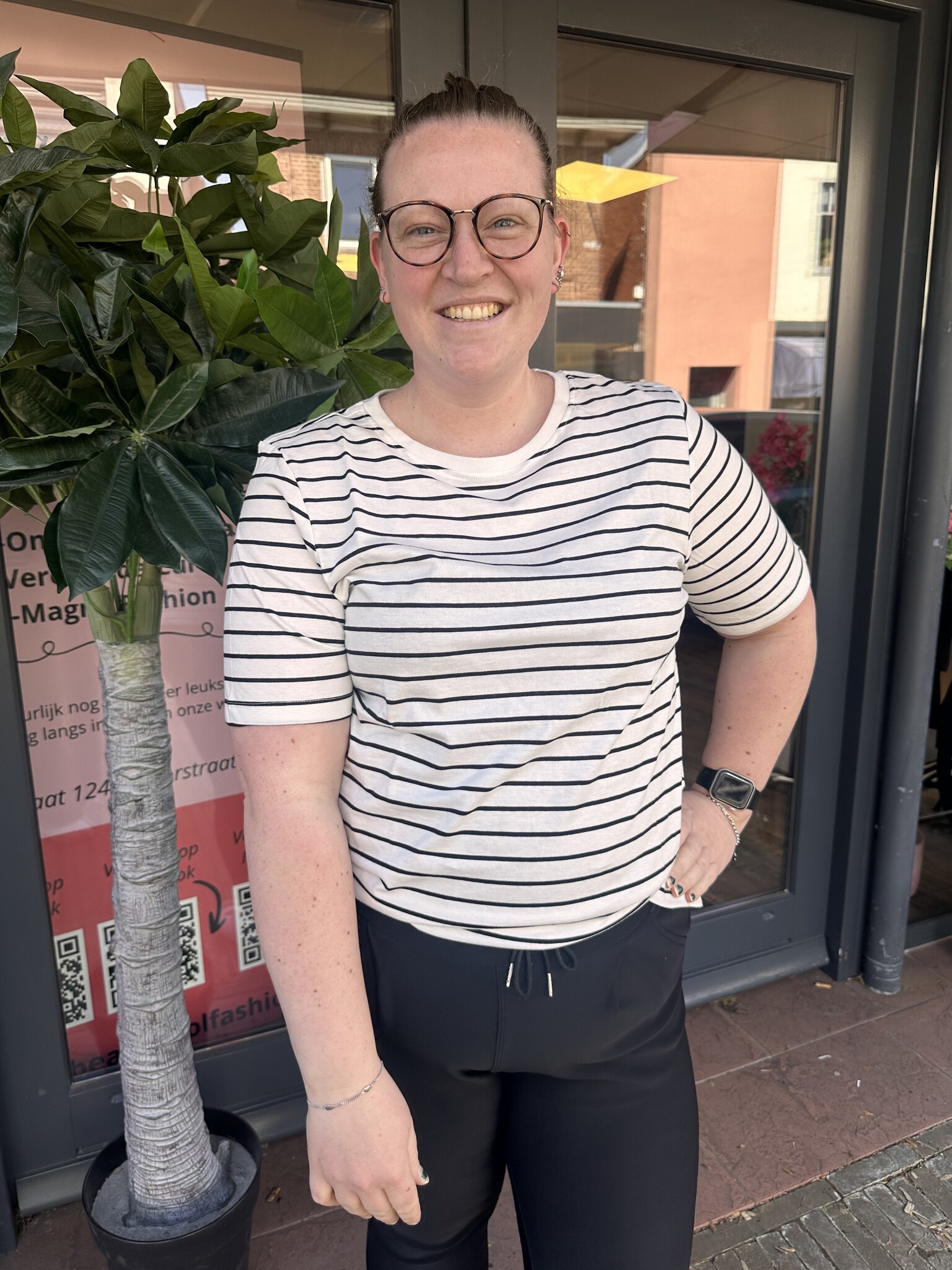 Nynke is 1.65m lang en draagt maat 42/44.