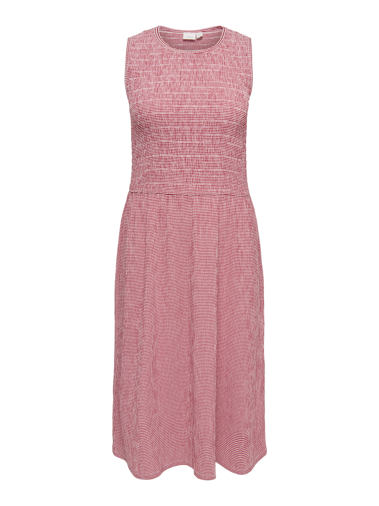 Only Carmakoma - De CARCELLE LIFE S/L SMOCK DRESS JRS in Barbados Cherry/Cloud Dance is een luchtige jurk zonder mouw en met smockdetails voor een comfortabele en flatterende pasvorm.
