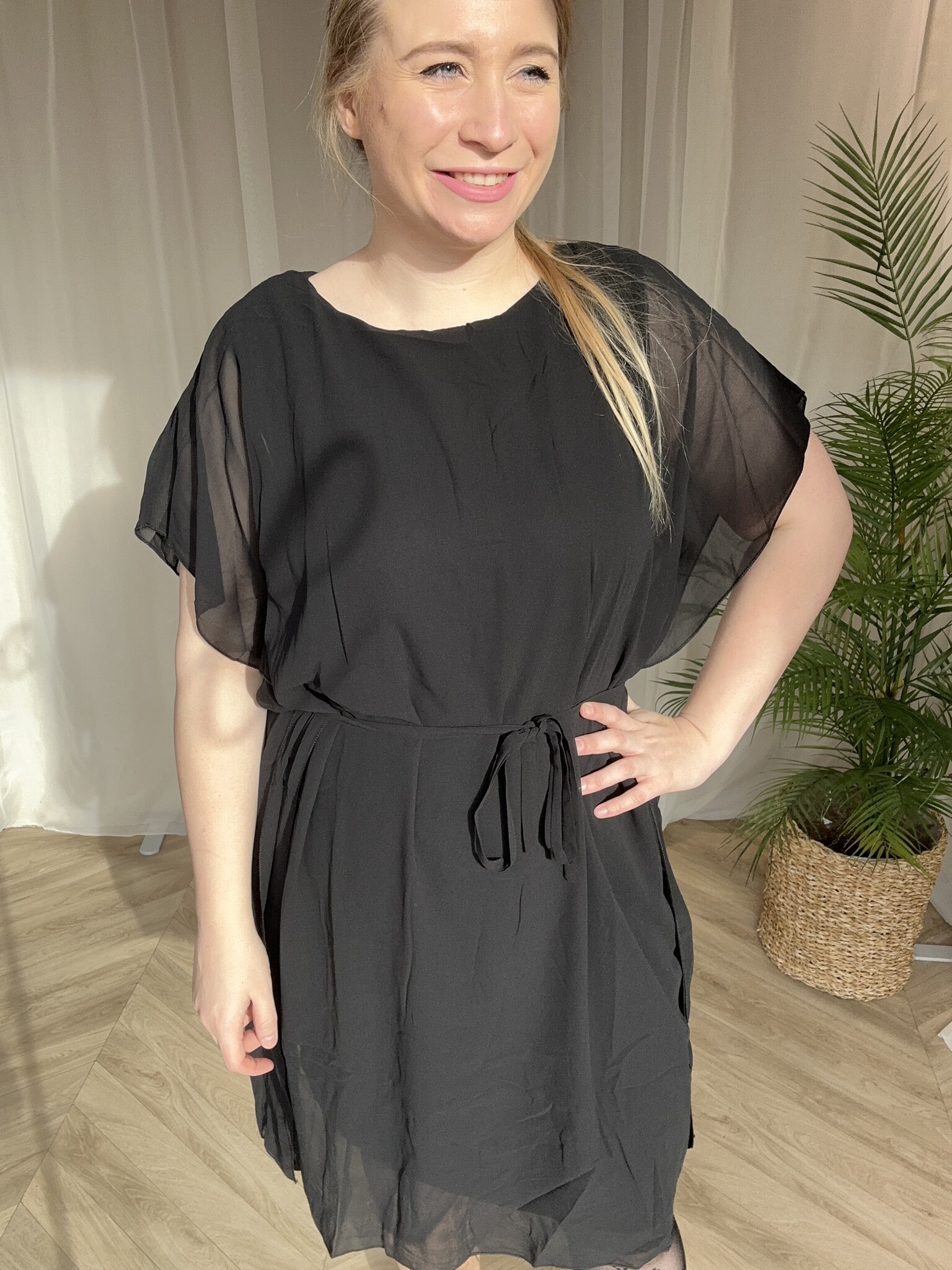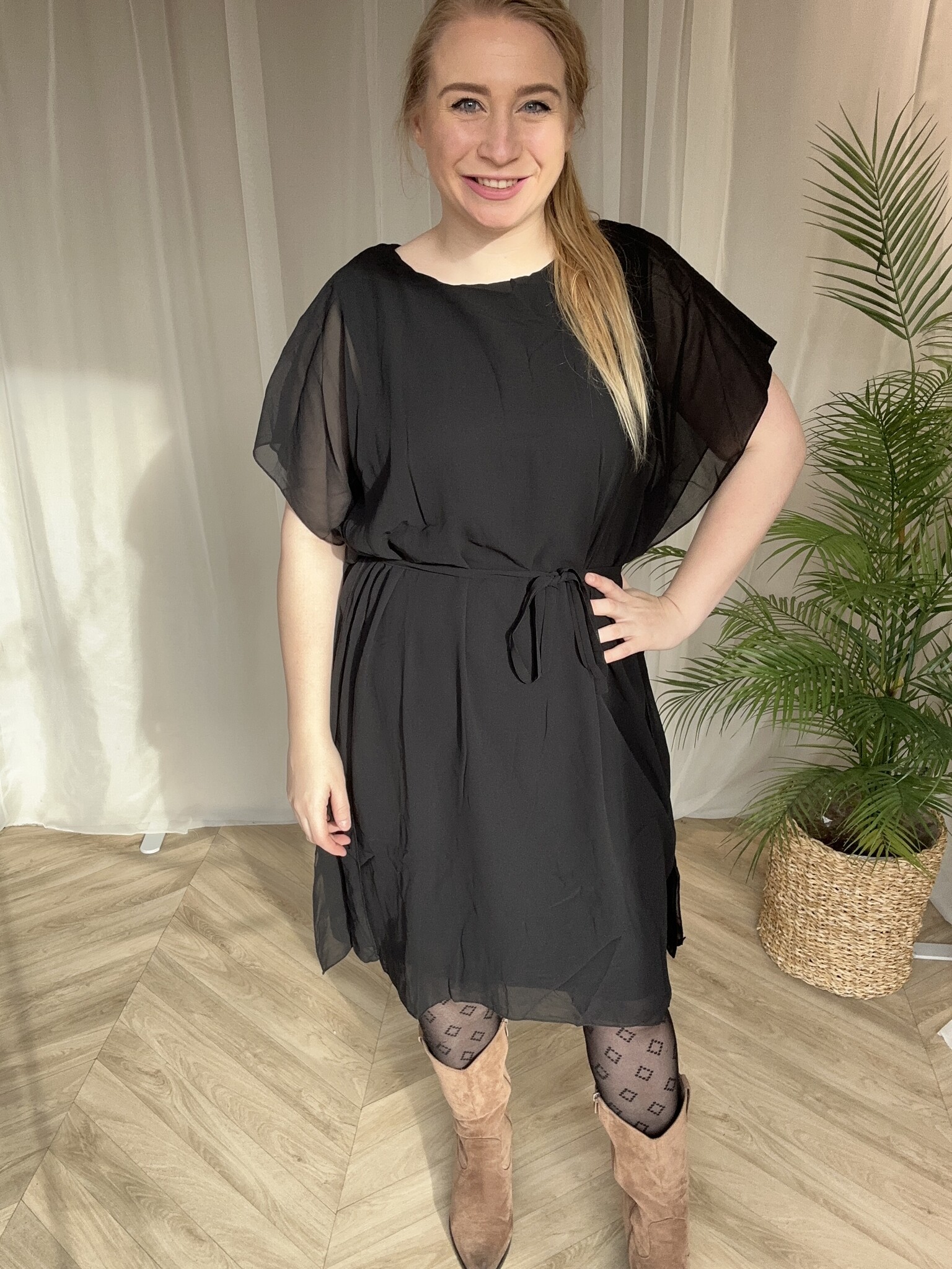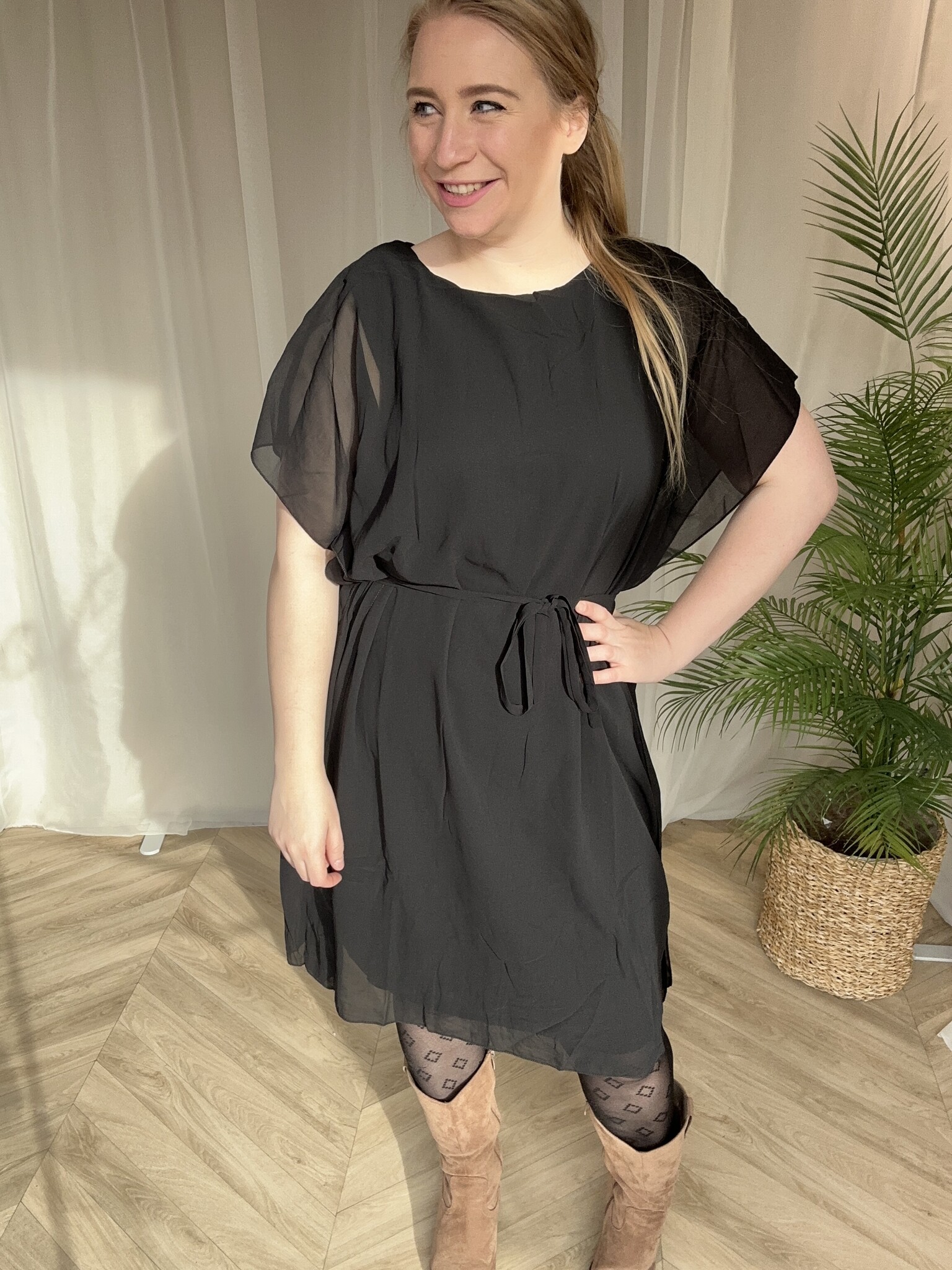 Prachtige jurk met ceintuur, de ceintuur kan er eventueel ook gewoon om weg.
