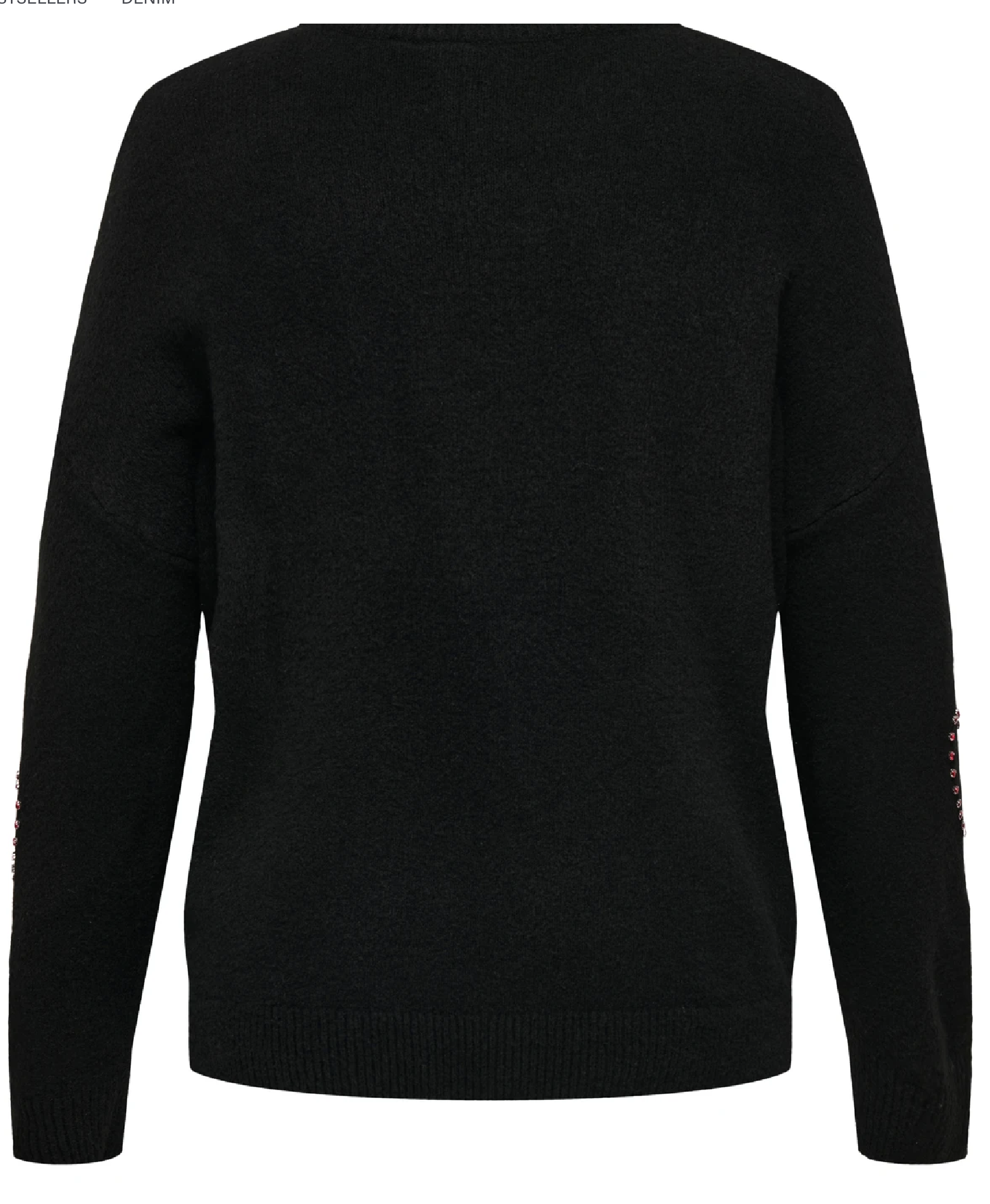 CARDAISY LS O-NECK BLING EX KNT Black/Red Rhines