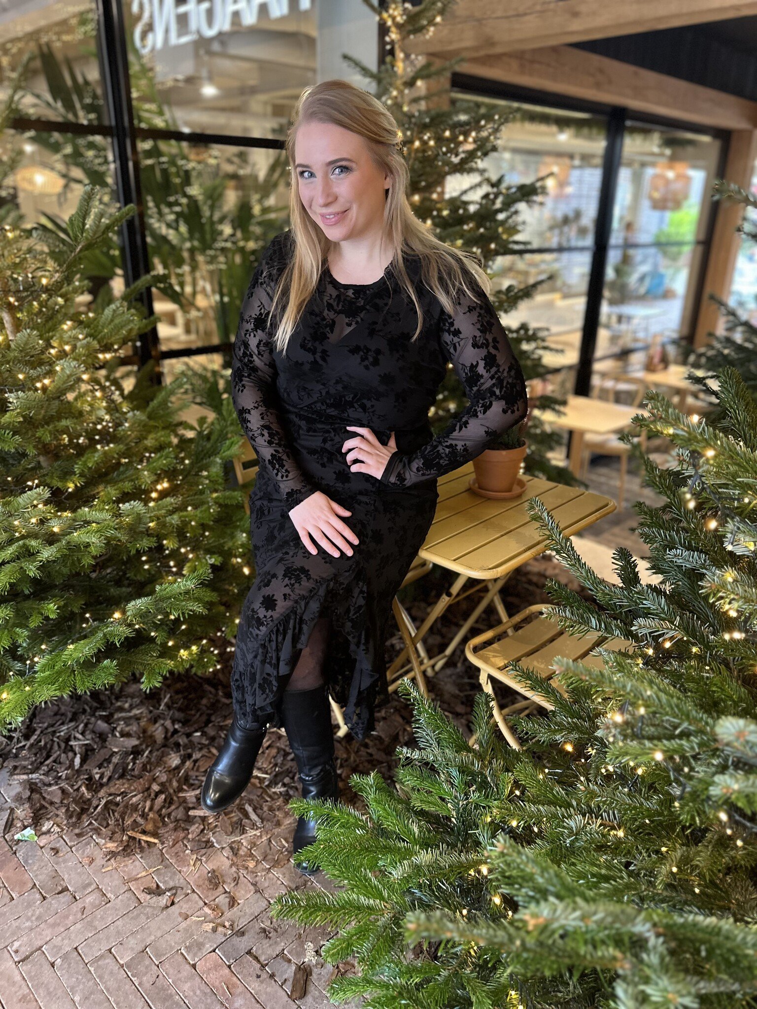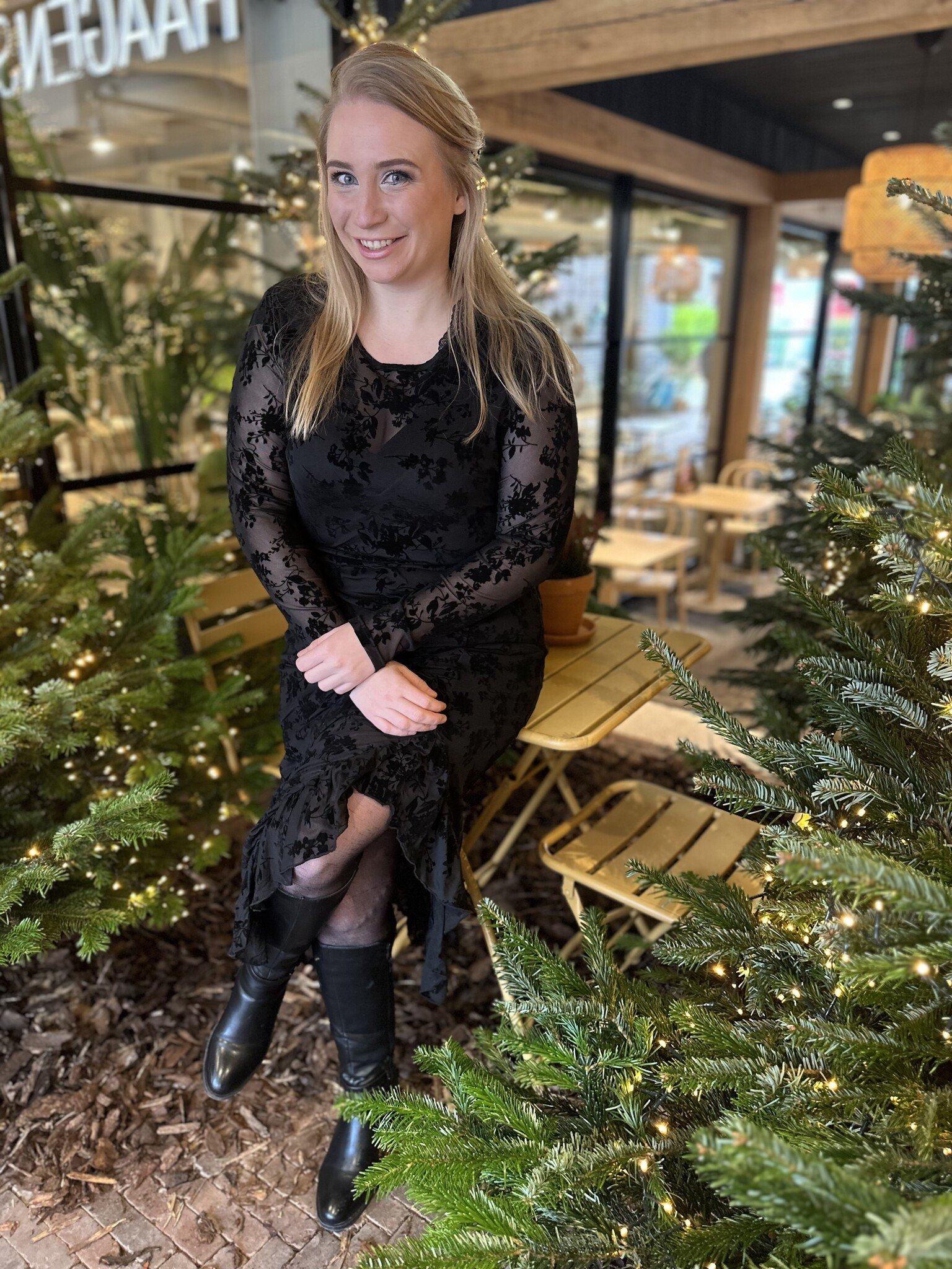 Prachtige blouse met heerlijke zachte fluwelen stof wat er op ligt. super leuk te combineren met de rok! Valt goed op maat.