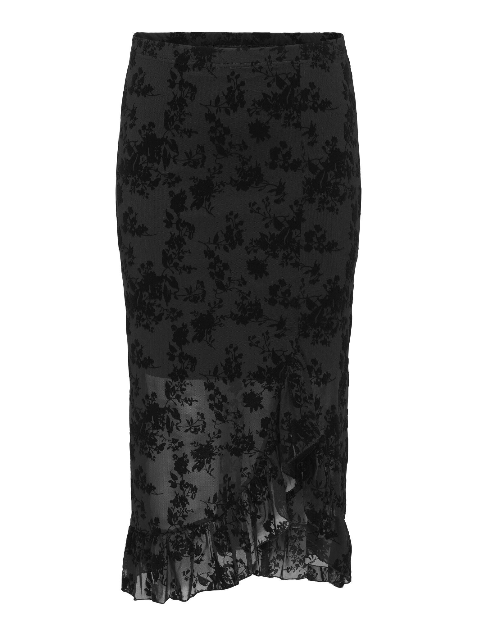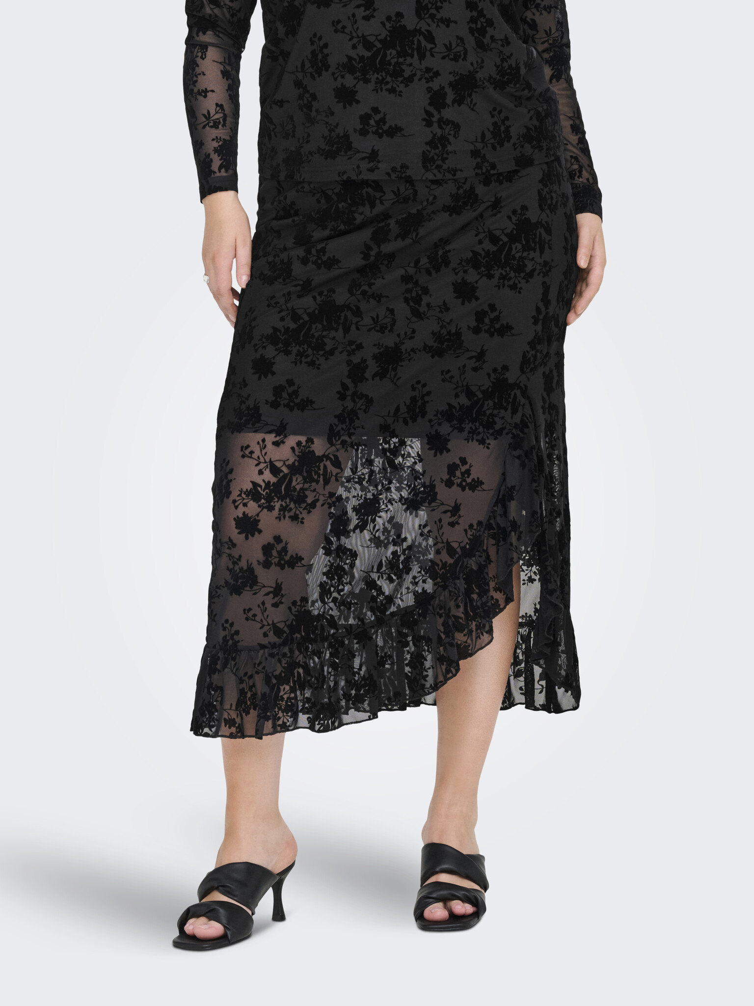 Only Carmakoma - Prachtige rok met bloemmotief – speelse roezel – transparante stof met onderrok