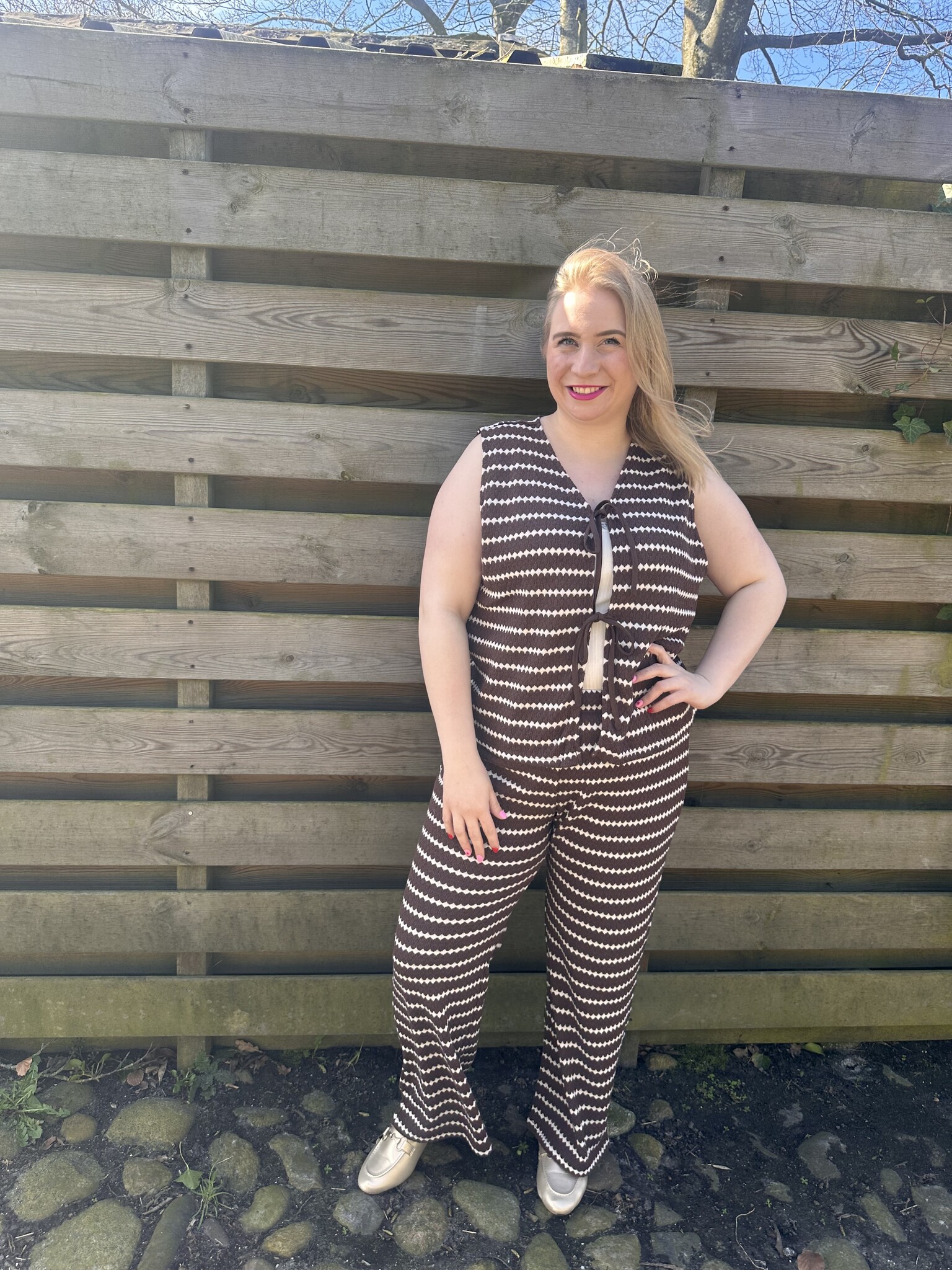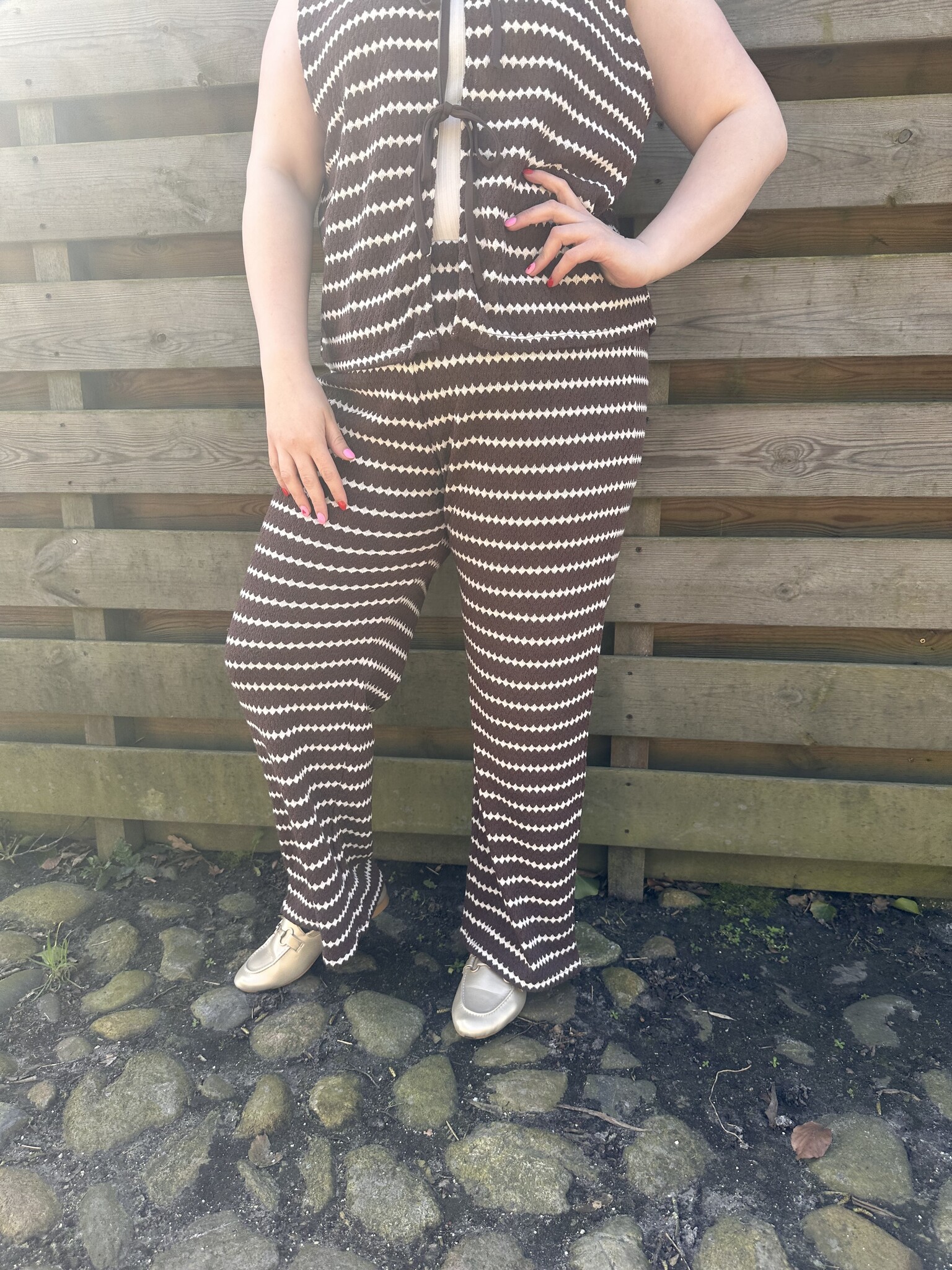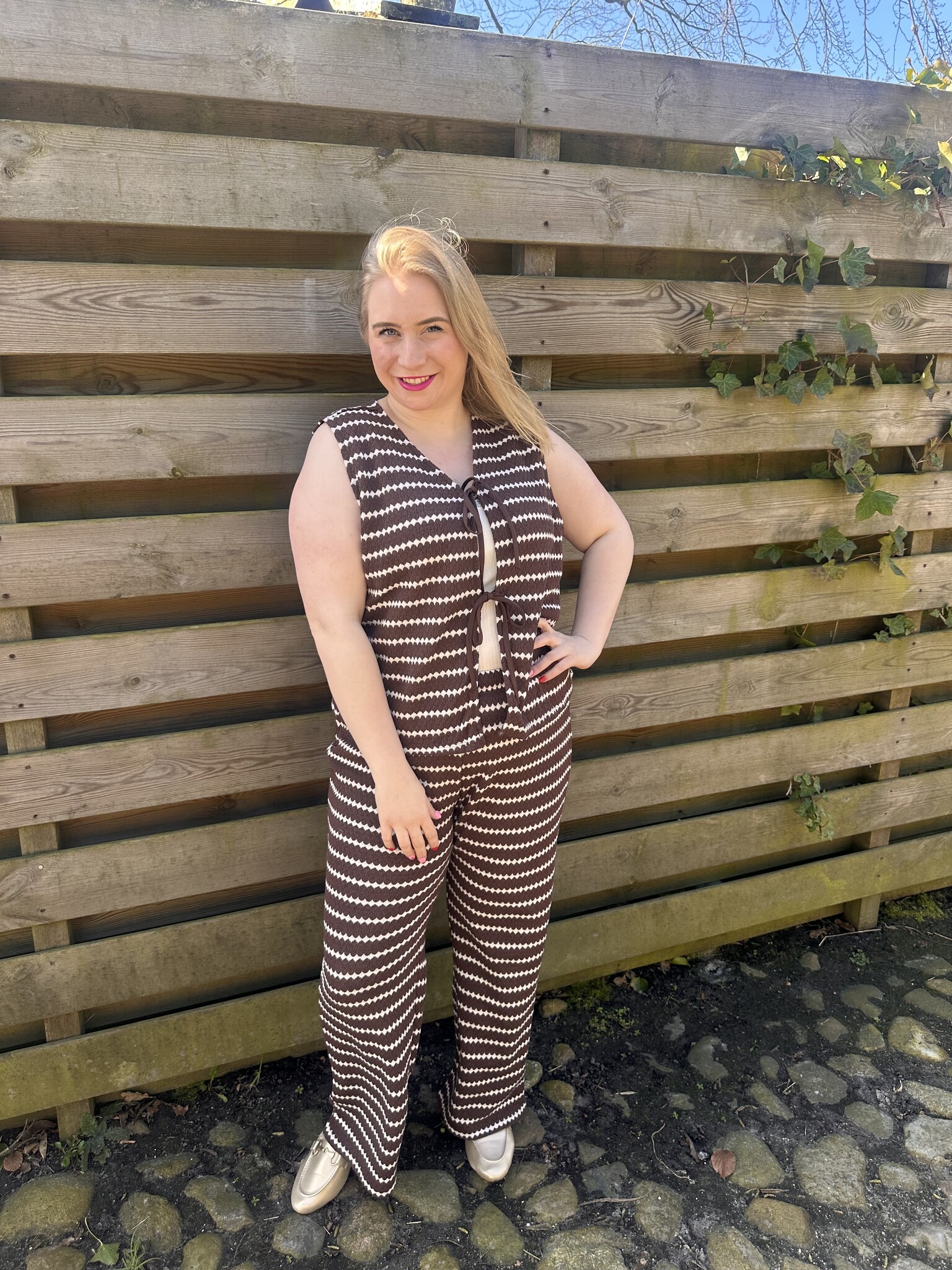 Only Carmakoma - De CAREVA S/L Short Stripe Vest in de kleur bruin met crème is de perfecte mix van comfort en elegantie. De subtiele strepen en het mouwloze design geven deze top een frisse, moderne uitstraling, terwijl de zachte stof heerlijk aanvoelt op de huid.