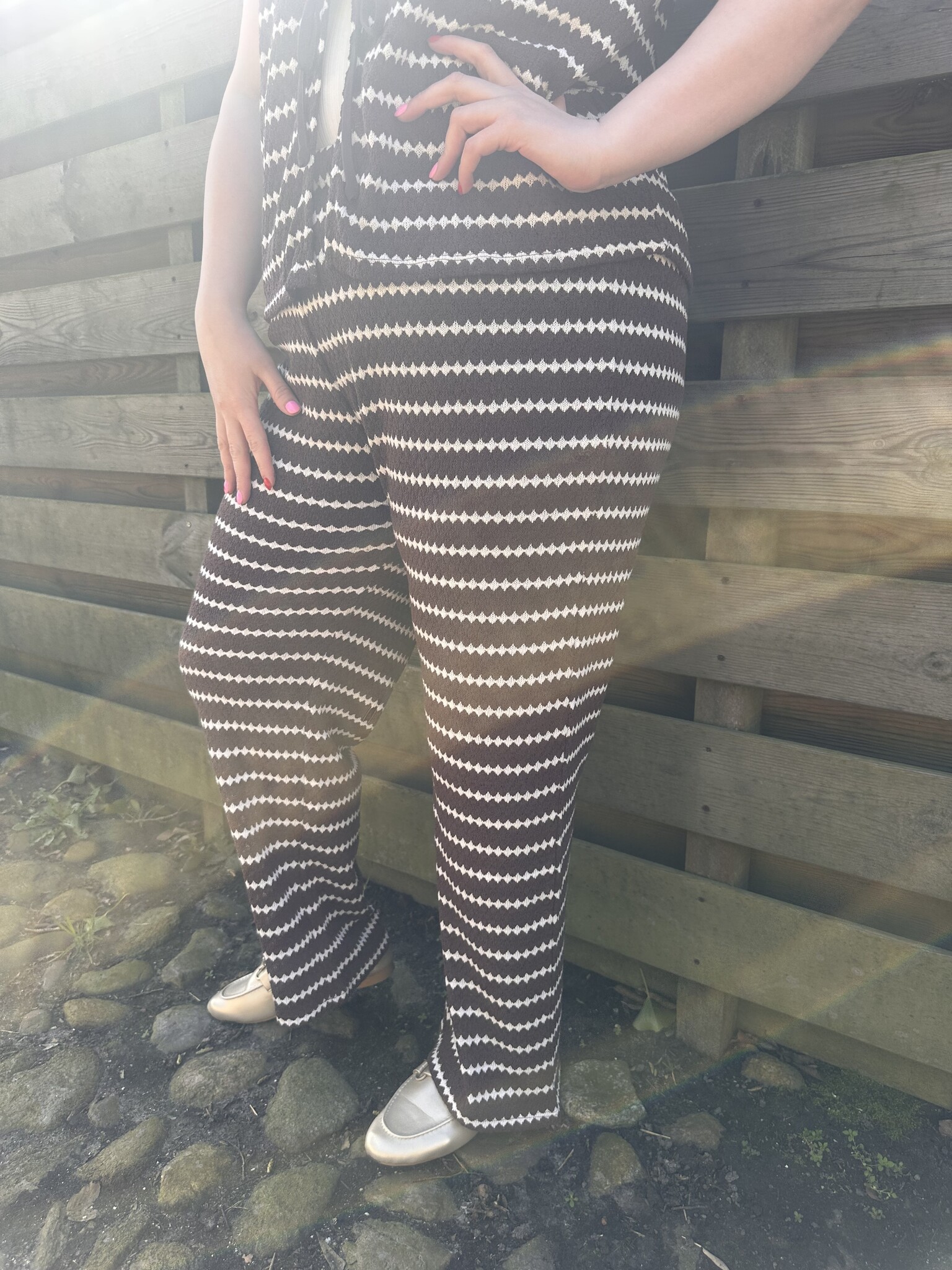 Only Carmakoma - Ga voor effortless chic met de CAREVA Stripe Wide Leg Pant in de kleur bruin met crème. Deze broek met wijde pijpen en subtiele strepen zorgt voor een elegante, vrouwelijke uitstraling én ultiem draagcomfort. De luchtige stof valt soepel langs het lichaam en geeft elke look een stijlvolle, ontspannen vibe.