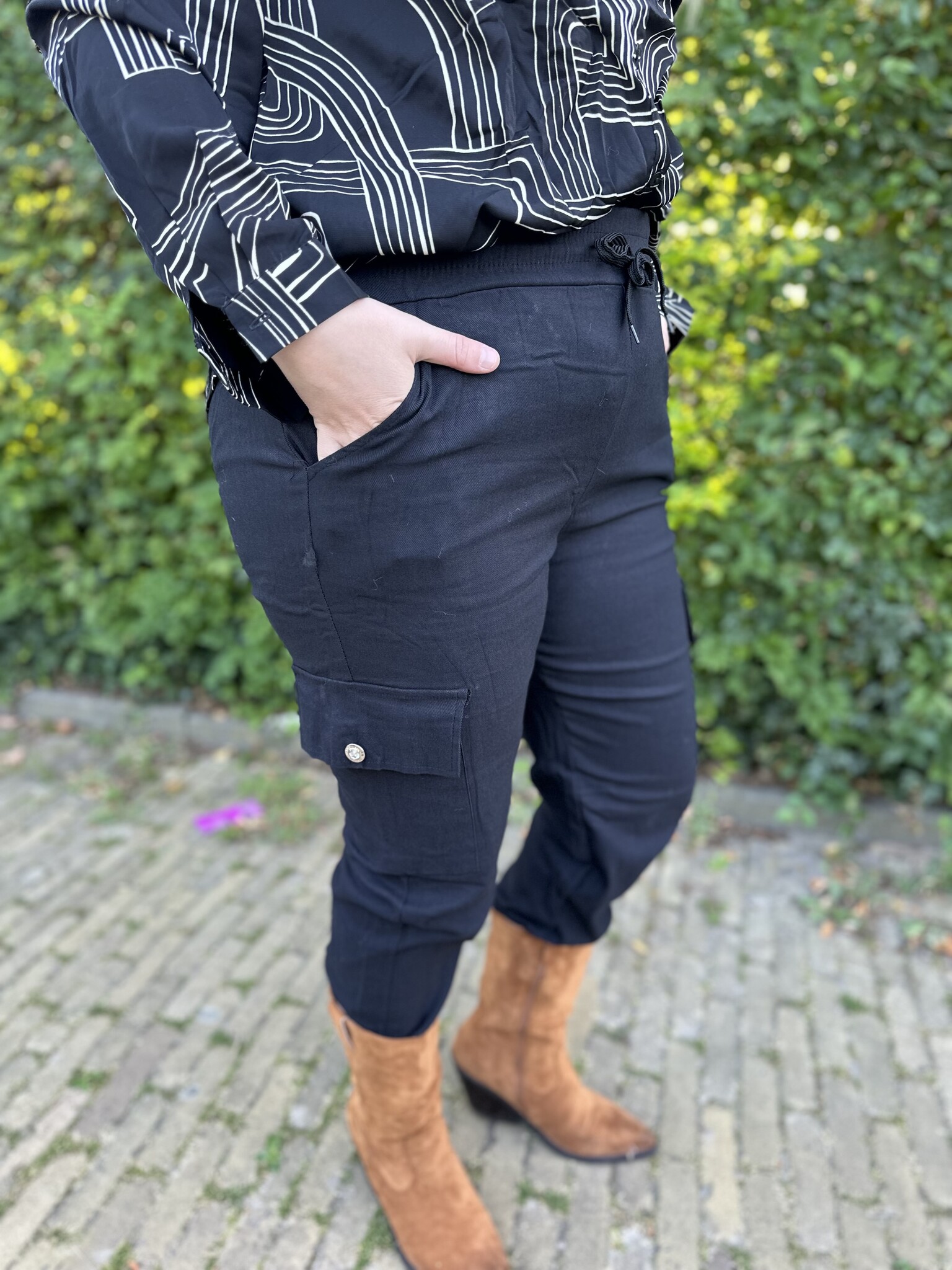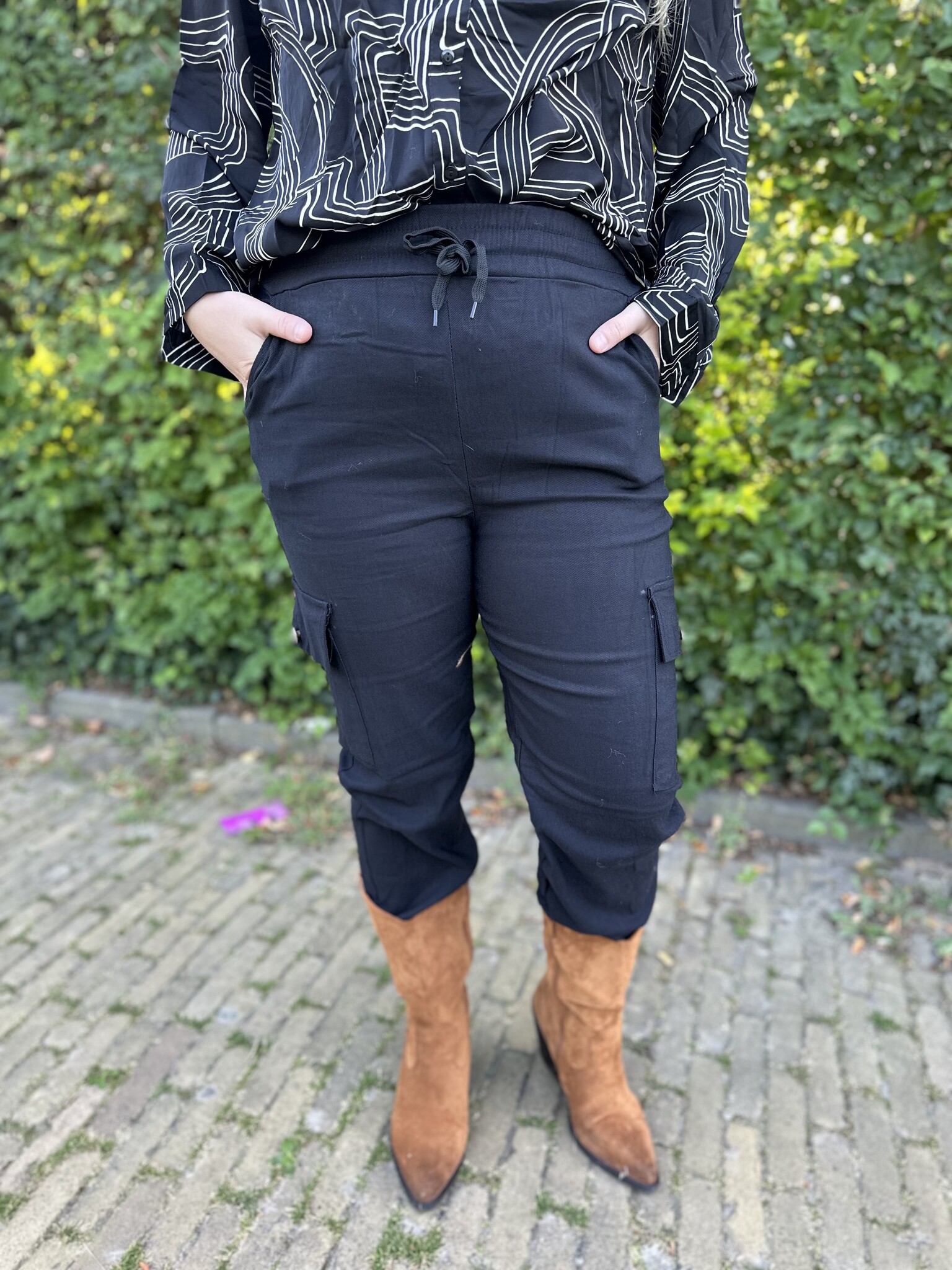 Super leuke broek met zakken, cargo broek model. Met elastiek bij de pijpen.