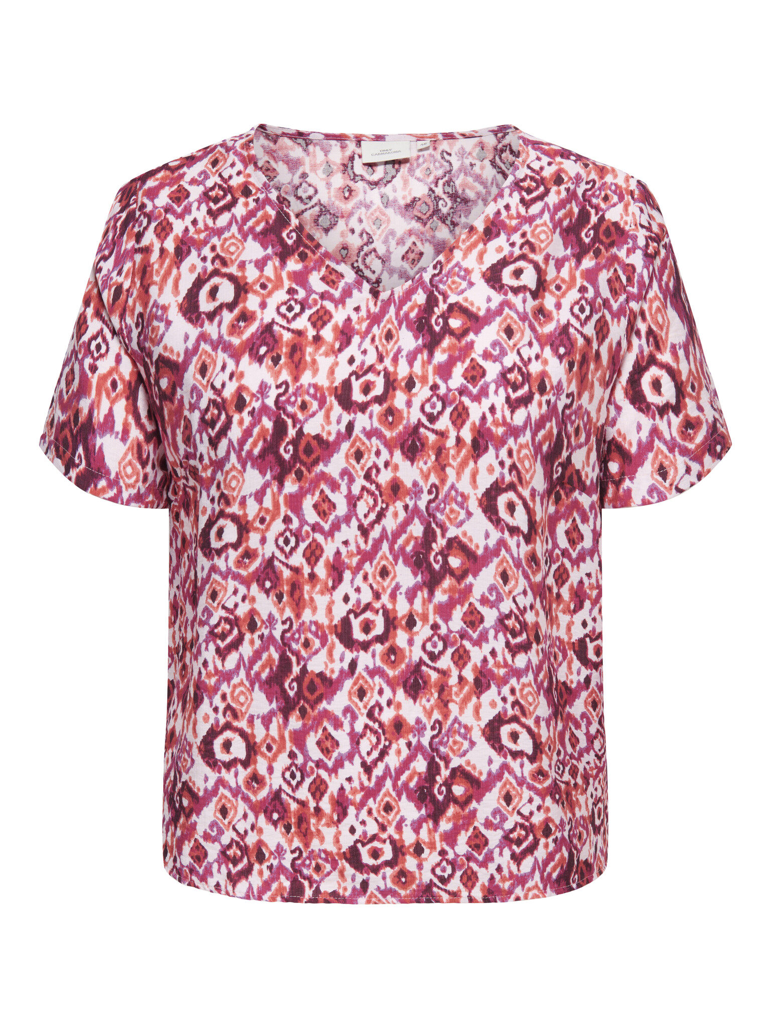 Dit groene shirt van Vero Moda Curve draagt heerlijk en heeft een losvallende pasvorm. Het shirt heeft een mooie roze kleur met ikat-print. Gemaakt van een luchtige stof dat zorgt voor een fijn draagcomfort. Het shirt is afgewerkt met V-hals. Een casual shirt dat leuk te combineren is met een jeans!