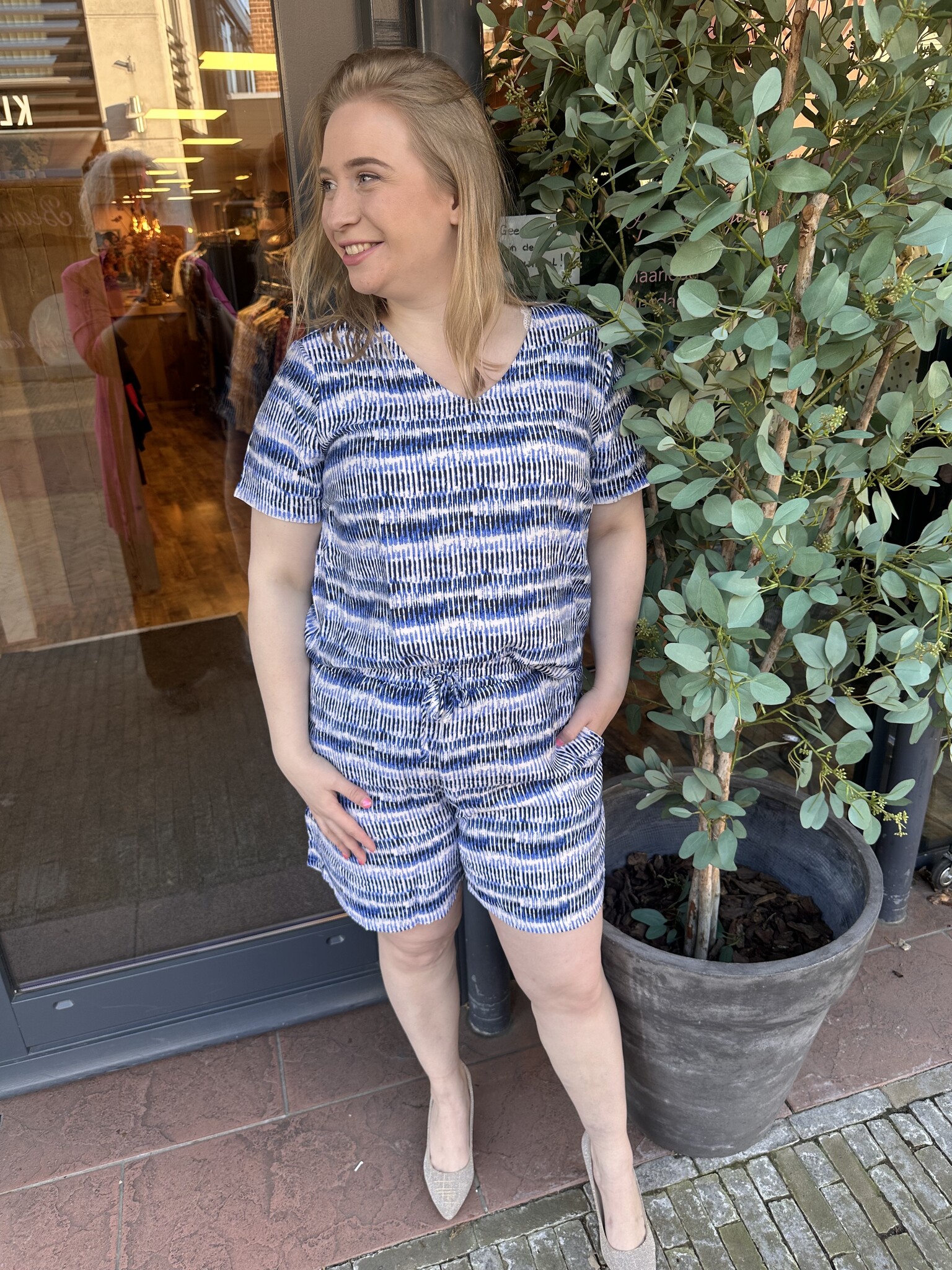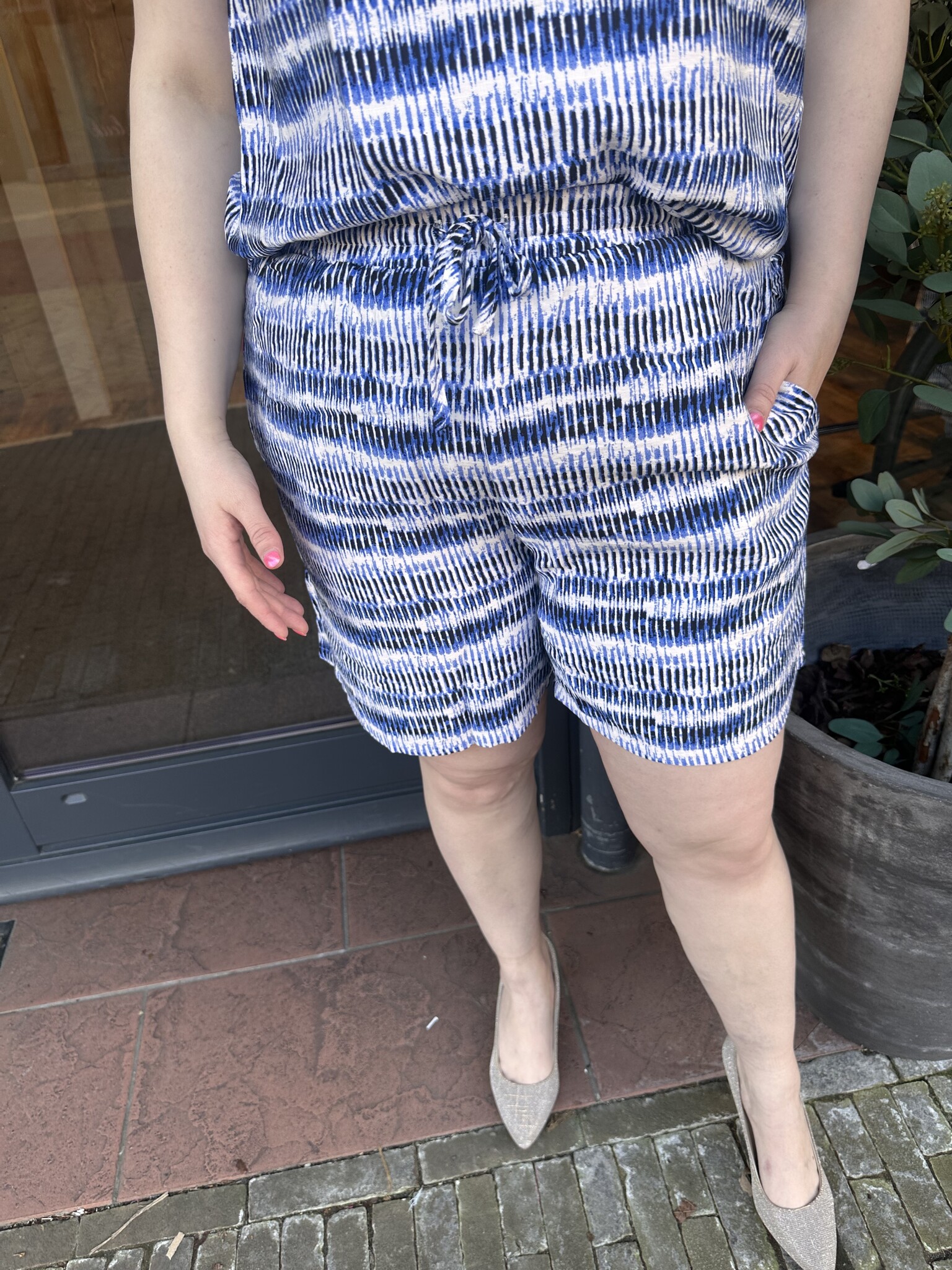 Deze korte broek van Only Carmakoma draagt heerlijk en valt mooi. Dit broekje heeft een mooie witte kleur met een zwarte en blauwe print en heeft een los model. Gemaakt van een luchtige stof voor een fijn draagcomfort. Deze broek heeft elastiek in de taille en zakken aan de voorkant. Leuk te combineren met het leuke bijpassende shirt!