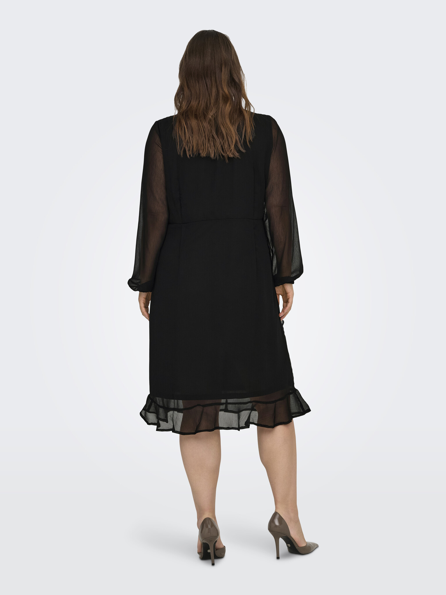 Only Carmakoma - Deze prachtige zwarte jurk van ONLY Carmakoma is een echte eyecatcher! De jurk valt goed op maat en draagt heerlijk. De transparante mouwen en speelse roesel geven een elegante en vrouwelijke uitstraling, perfect voor zowel speciale gelegenheden als een stijlvolle daglook.