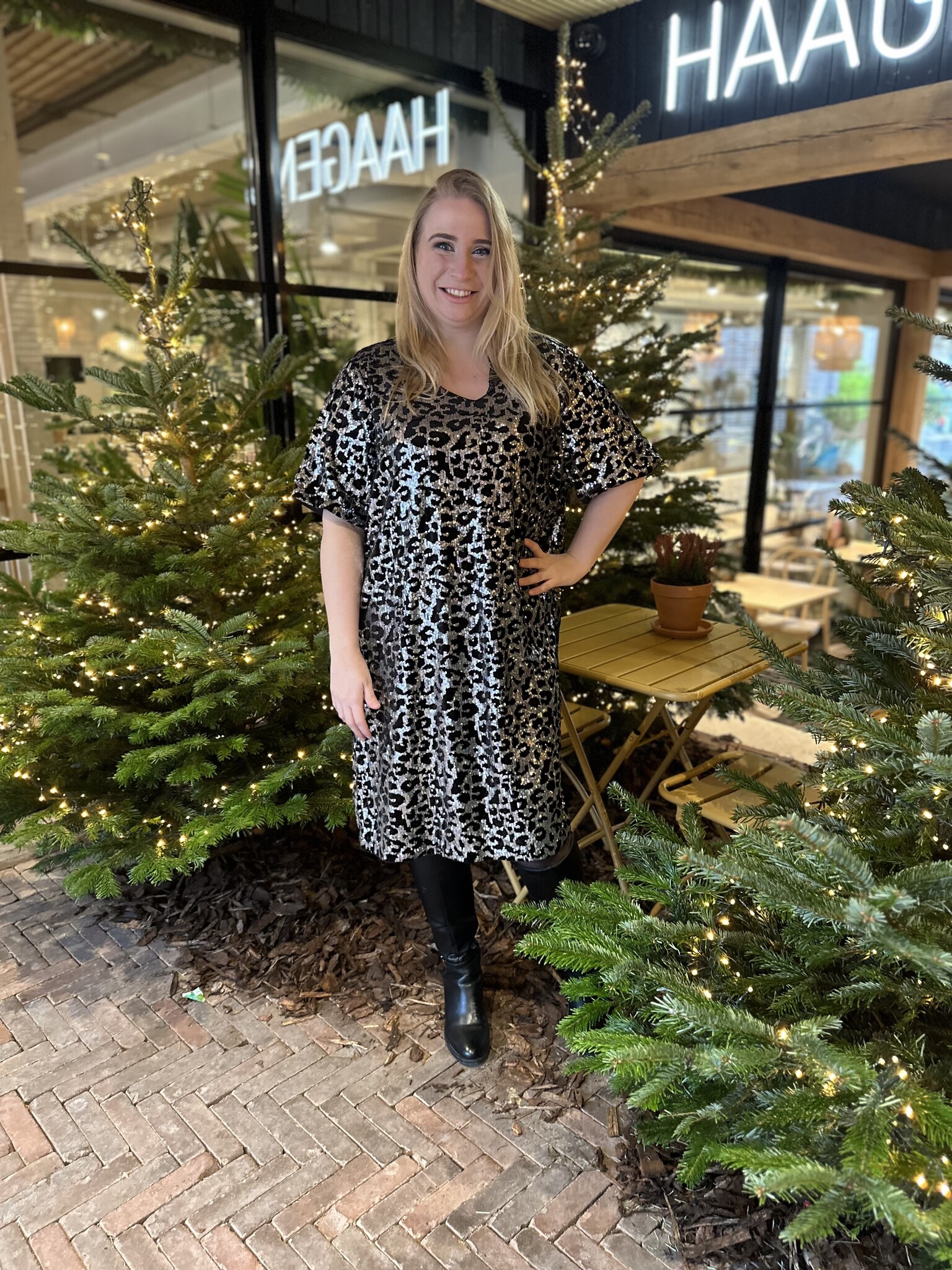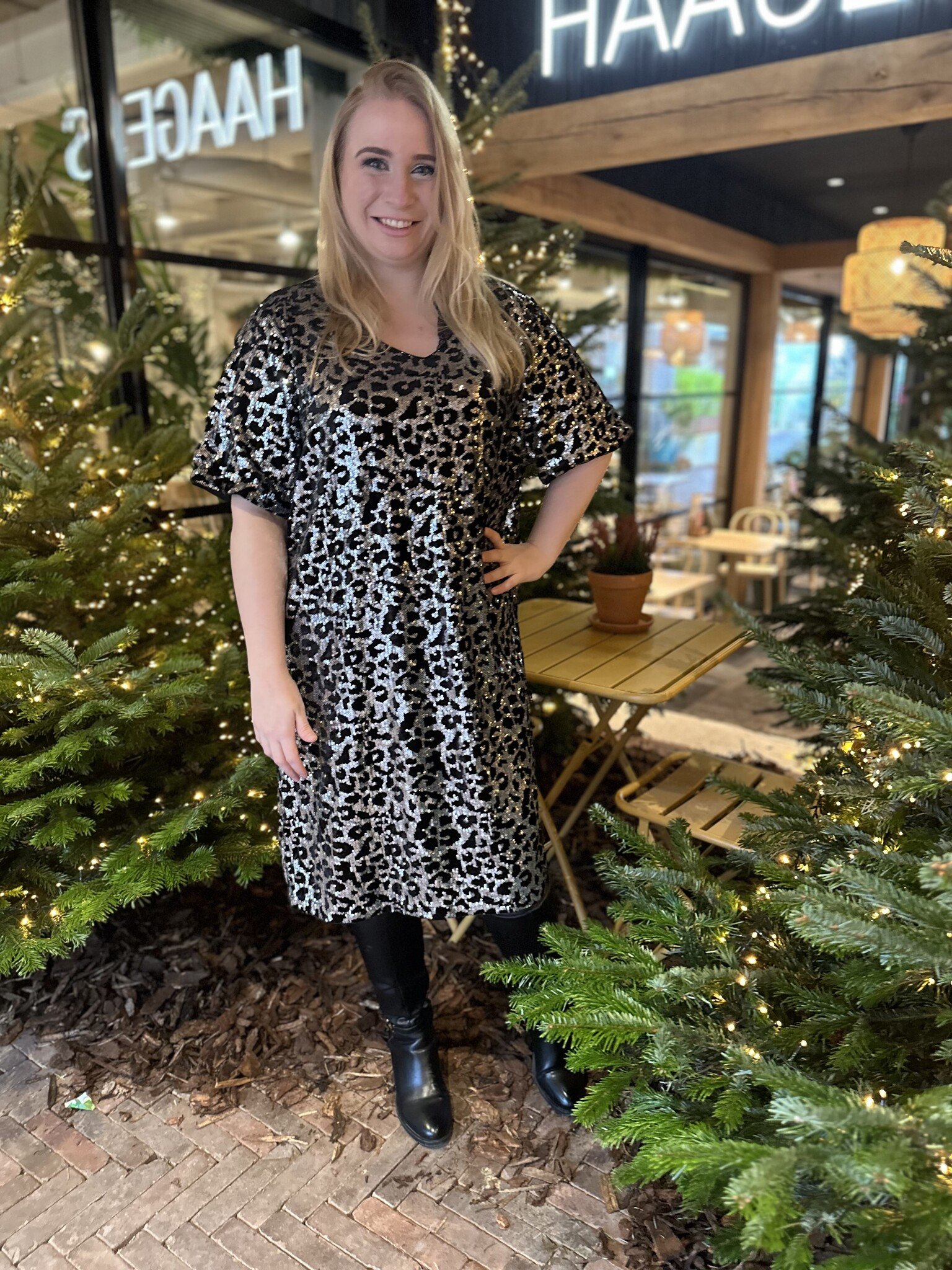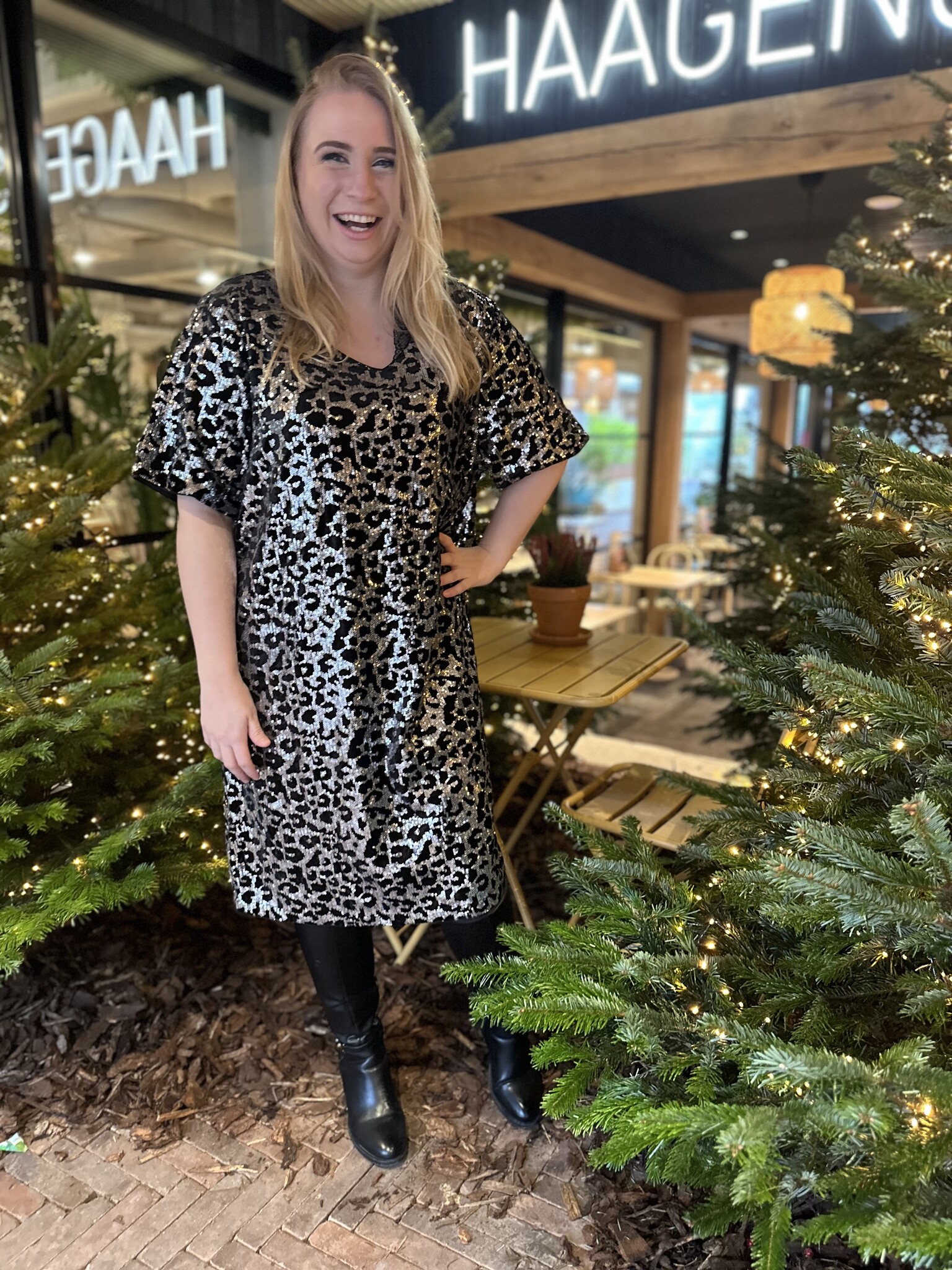 CARLEONORA LIFE S/S V-NECK ABK DRESS Black/Leo sequin