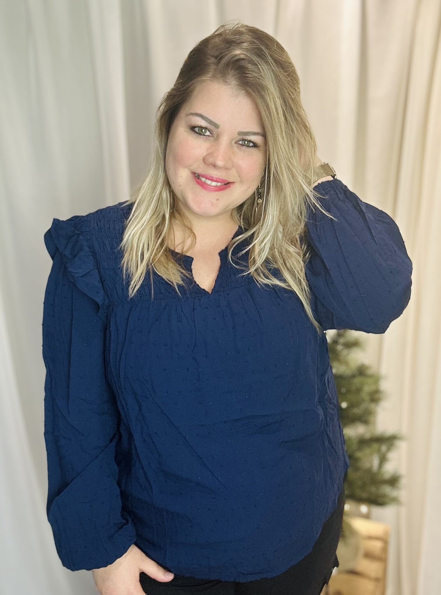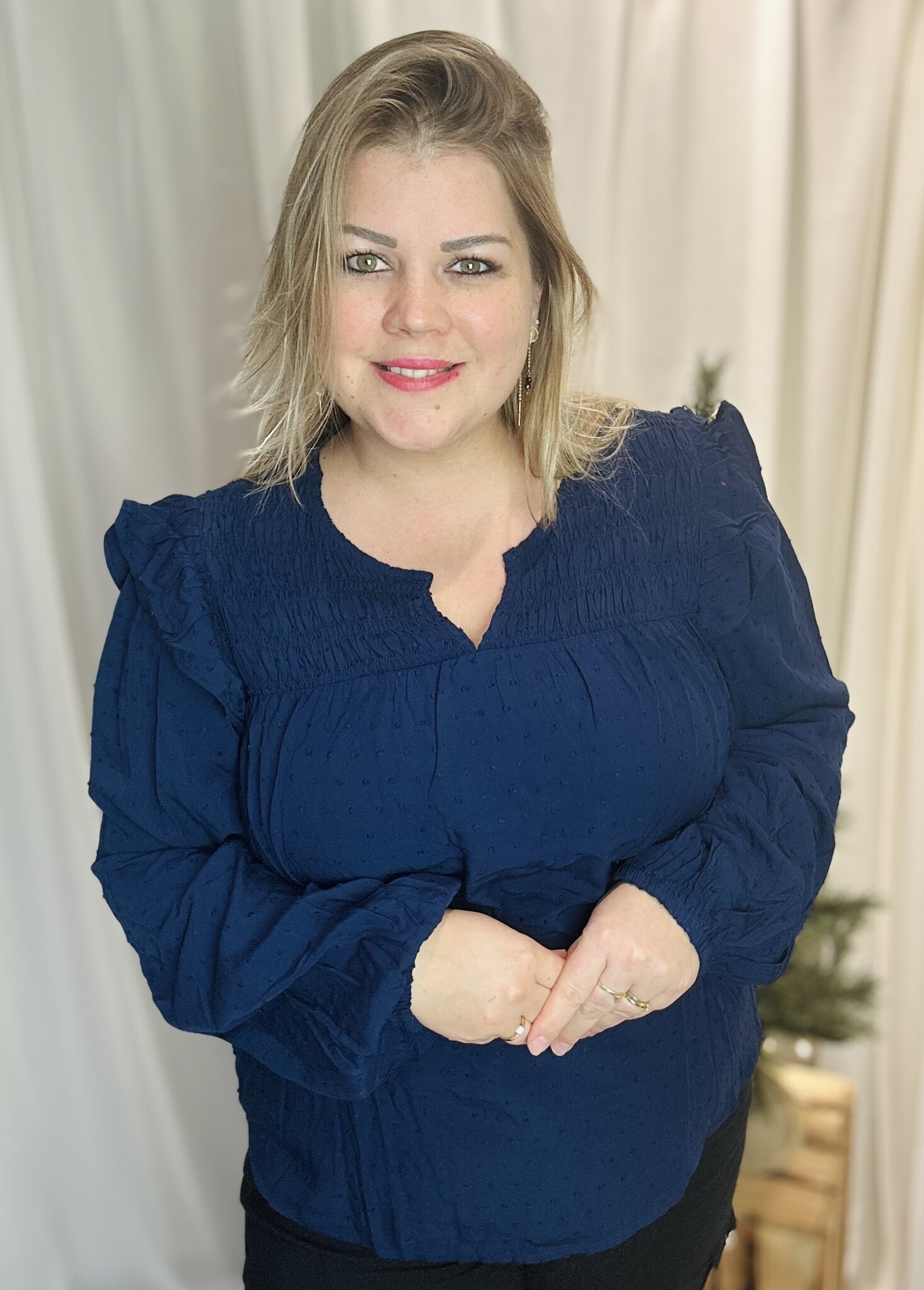 CARLIDA LS V-NECK SMOCK TOP WVN Naval Academy