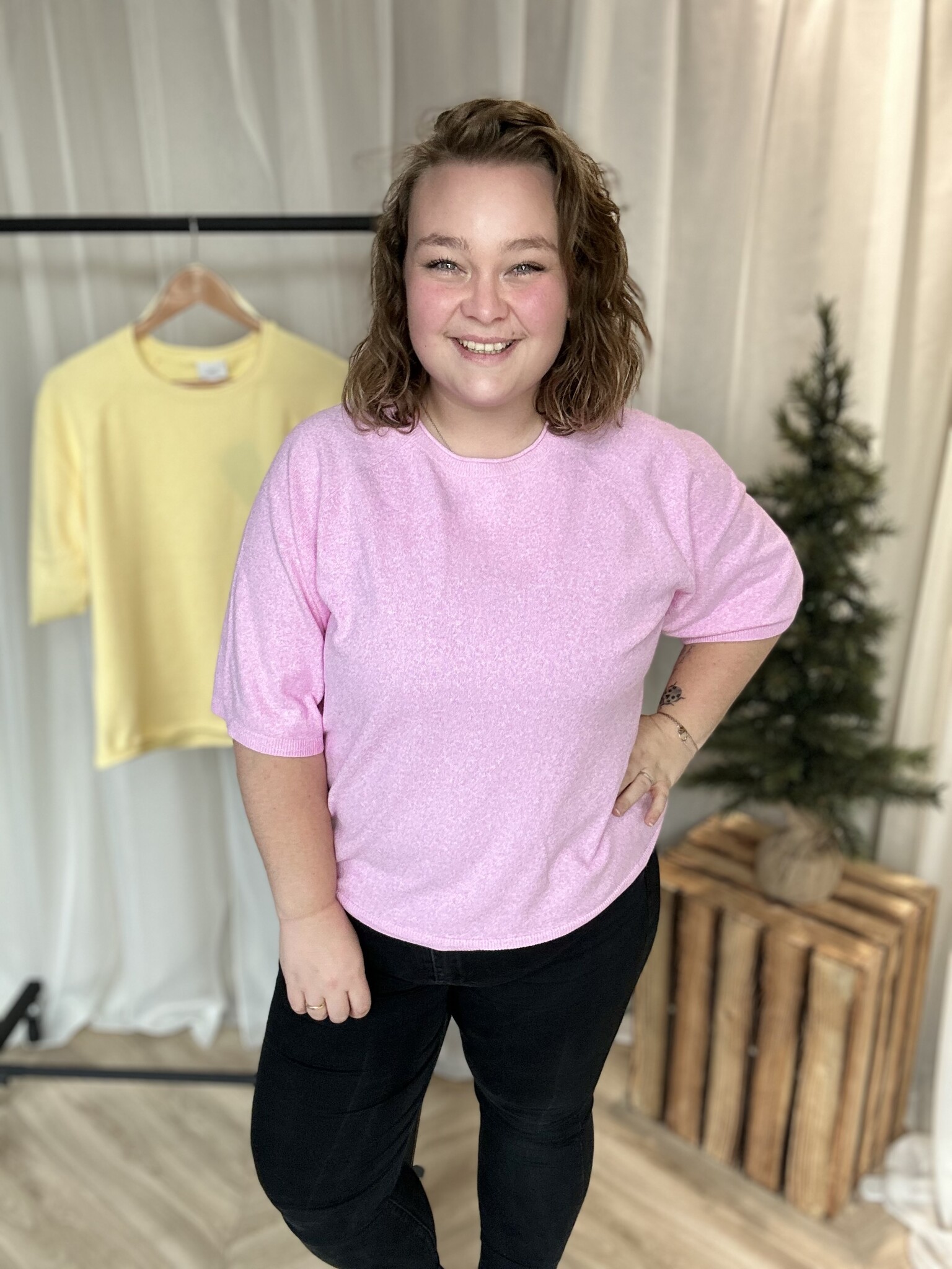 Only Carmakoma - Blijf warm met zachte knitwear, perfect voor als het wat frisser is en leuk te dragen onder een jasje of blazer. Trui is voorzien van een ronde hals en heeft t-shirt mouwen. Valt goed op maat.
