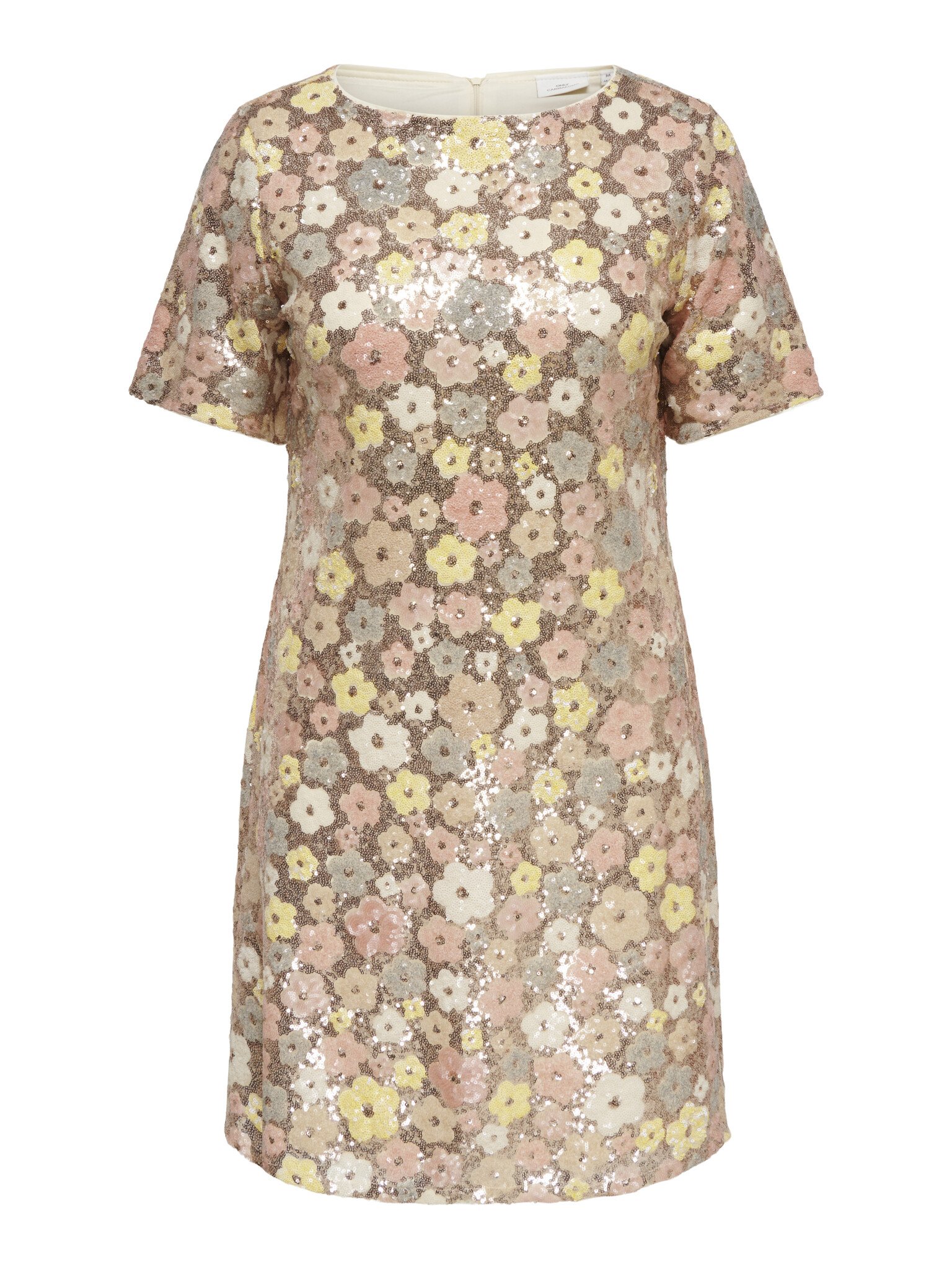 Wat een elegante jurk! Deze beige jurk met bloemenprint van pailletten van Only Carmakoma valt mooi om het lichaam. Gemaakt van een zachte stof dat zorgt voor een fijn draagcomfort. De jurk is afgewerkt met ronde hals en is aan de achterkant bovenaan dicht te ritsen. Perfect voor een elegante look!