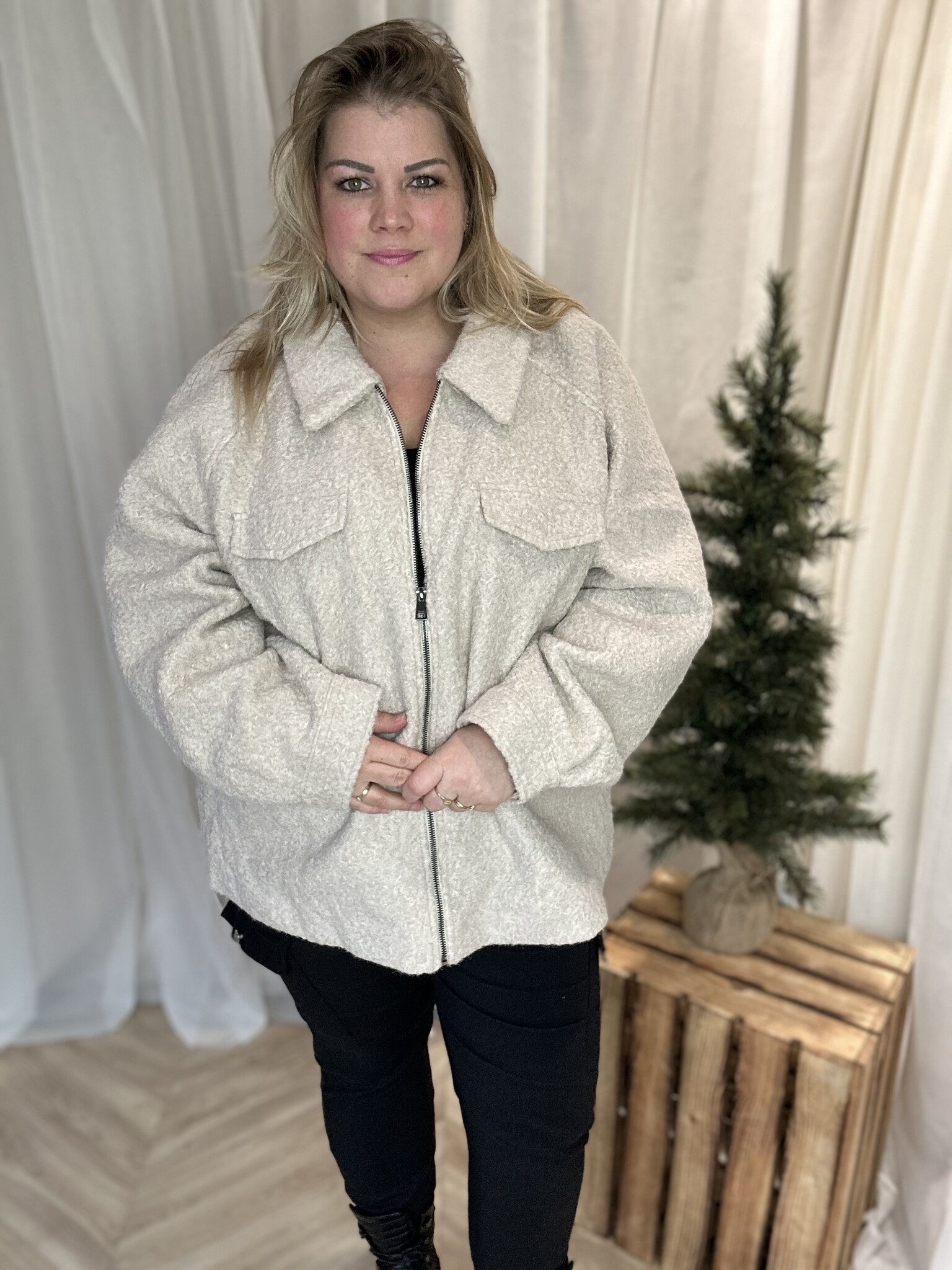 Dit licht gevoerd jasje in prachtige beige zandkleur van ONLY Carmakoma