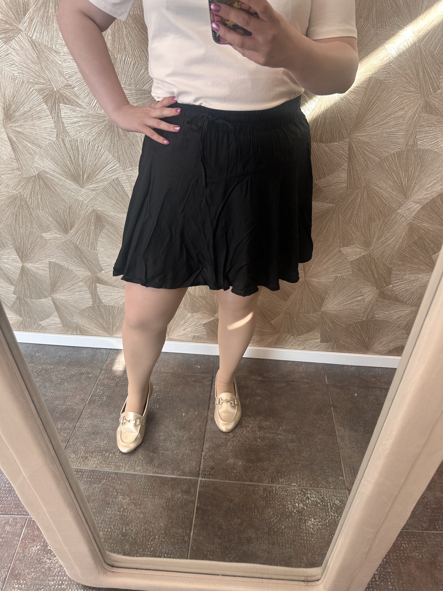 Deze zwarte broekrok van Only Carmakoma heeft een normale pasvorm. Gemaakt van een luchtige stof dat zorgt voor een fijn draagcomfort. De rok is afgewerkt met een elastische tailleband met strikkoord. Een casual chique broekrok die leuk te combineren is met een top!