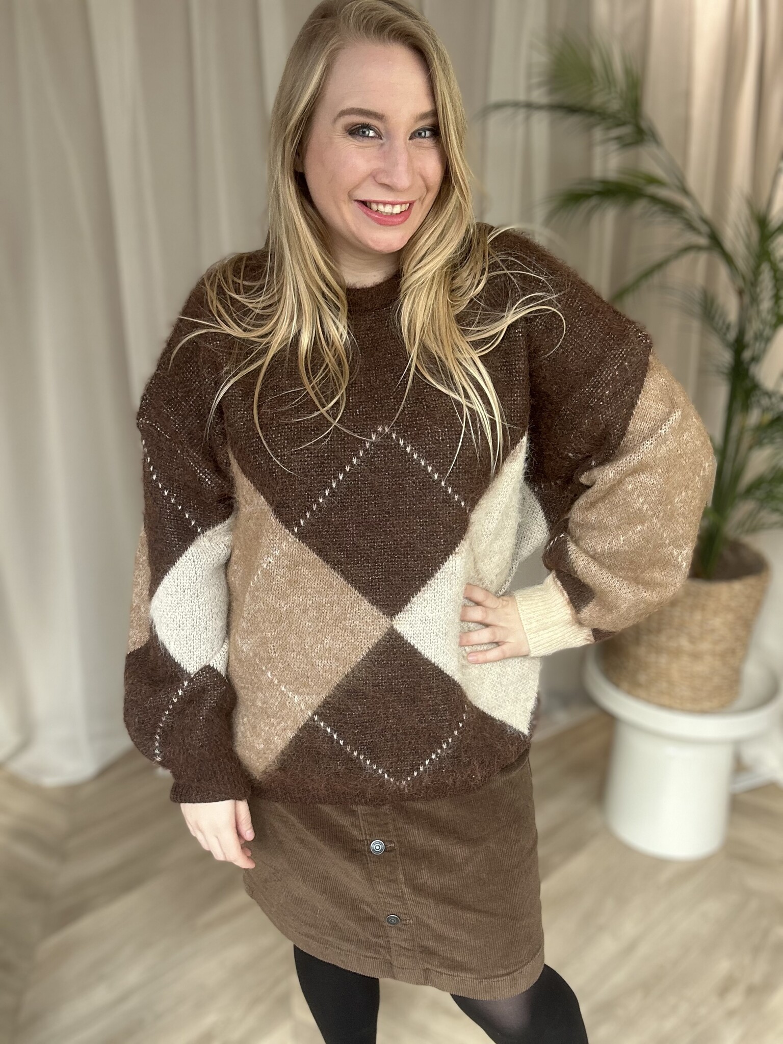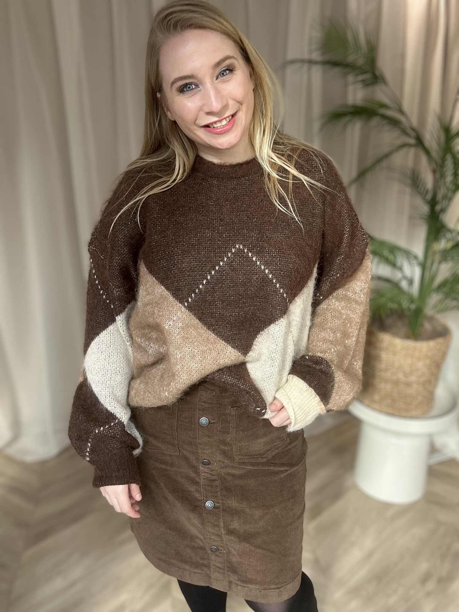 CARNOEME JQ LS LIFE O-NECK KNT Chestnut/Cacoa Crém
