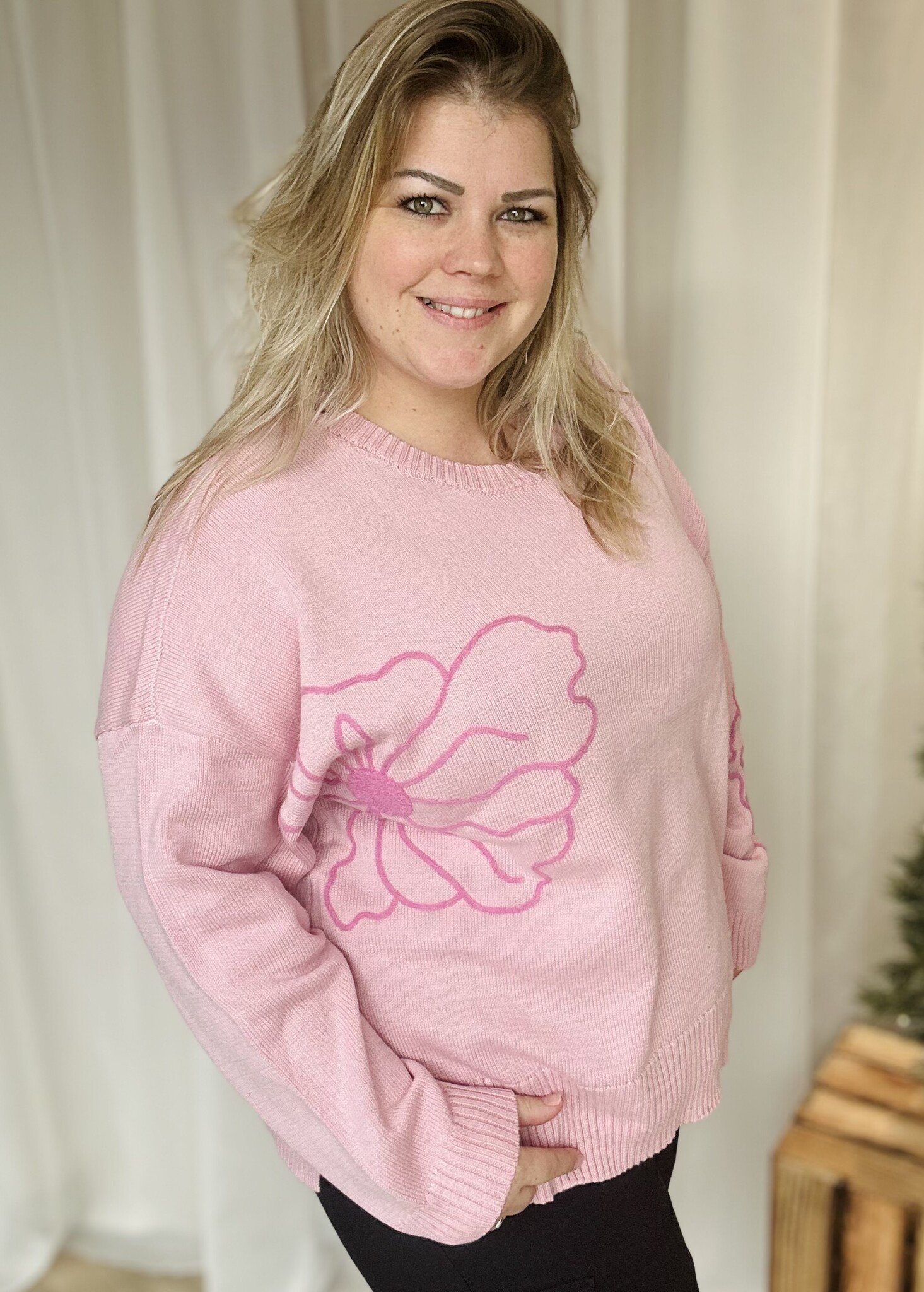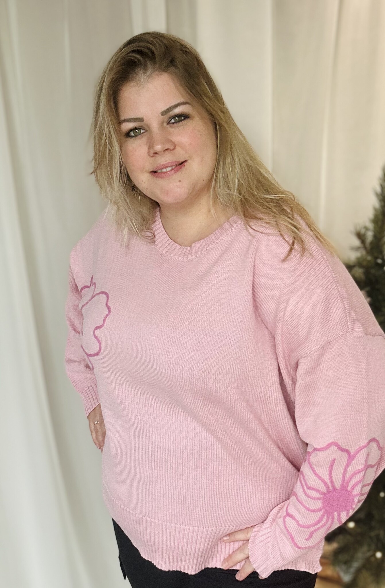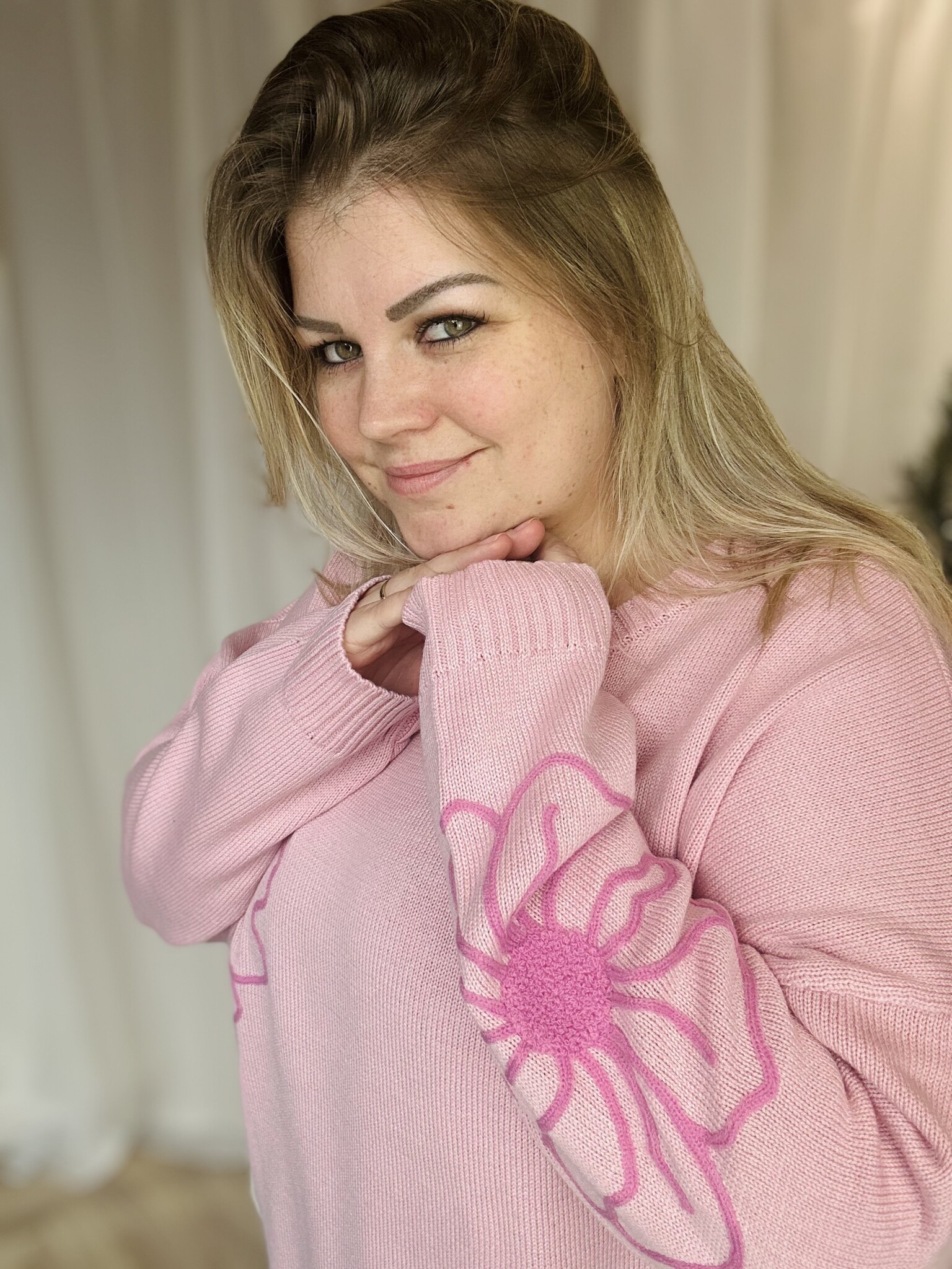 CARPETRTA LS FLOWER EMB O-NECK CC KNT Romance Rose/Wild Orchi
