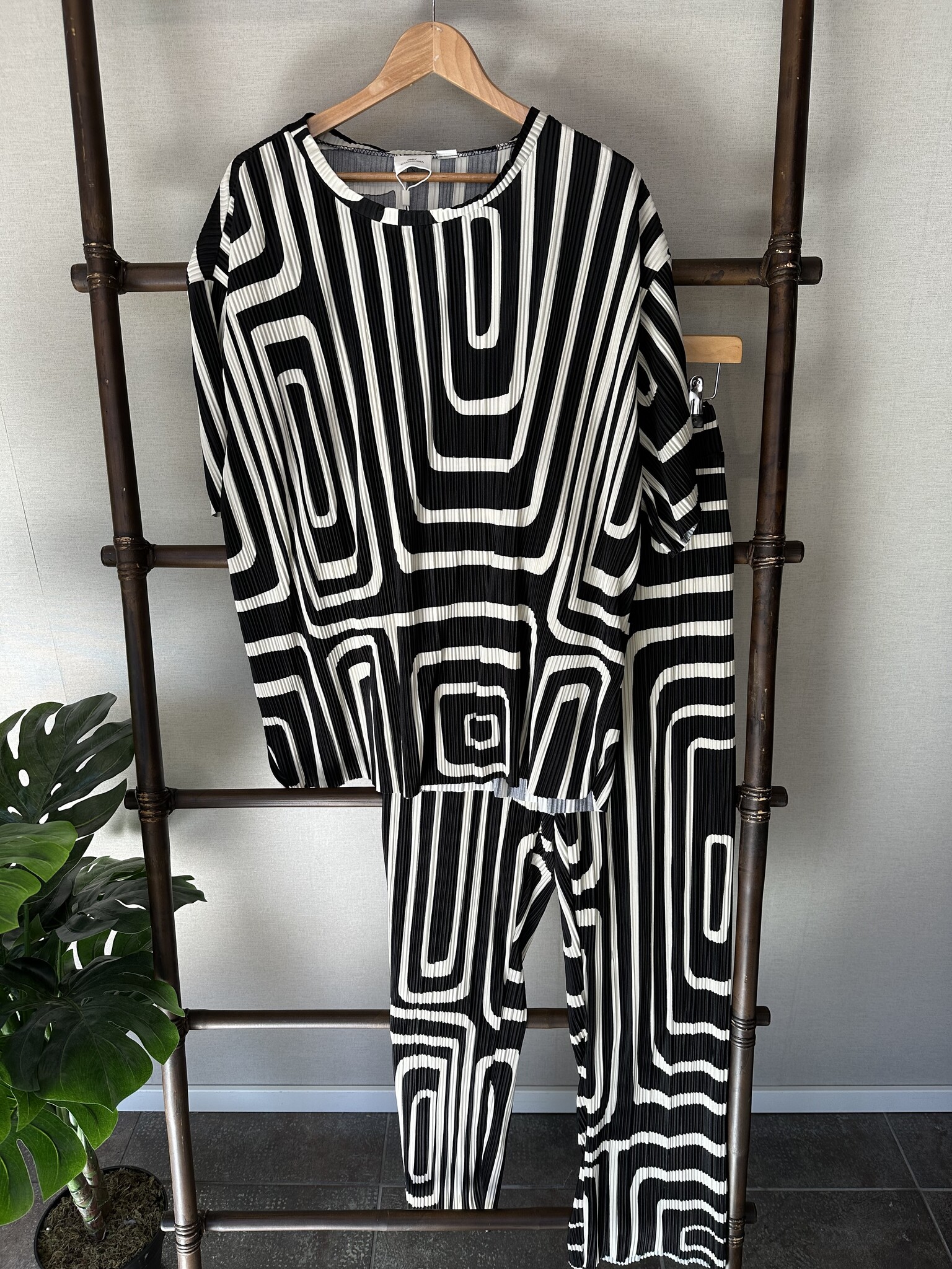 CARRAVENNA PLISSE AOP PANT JRS NOOS Black/Oatmeal Gr