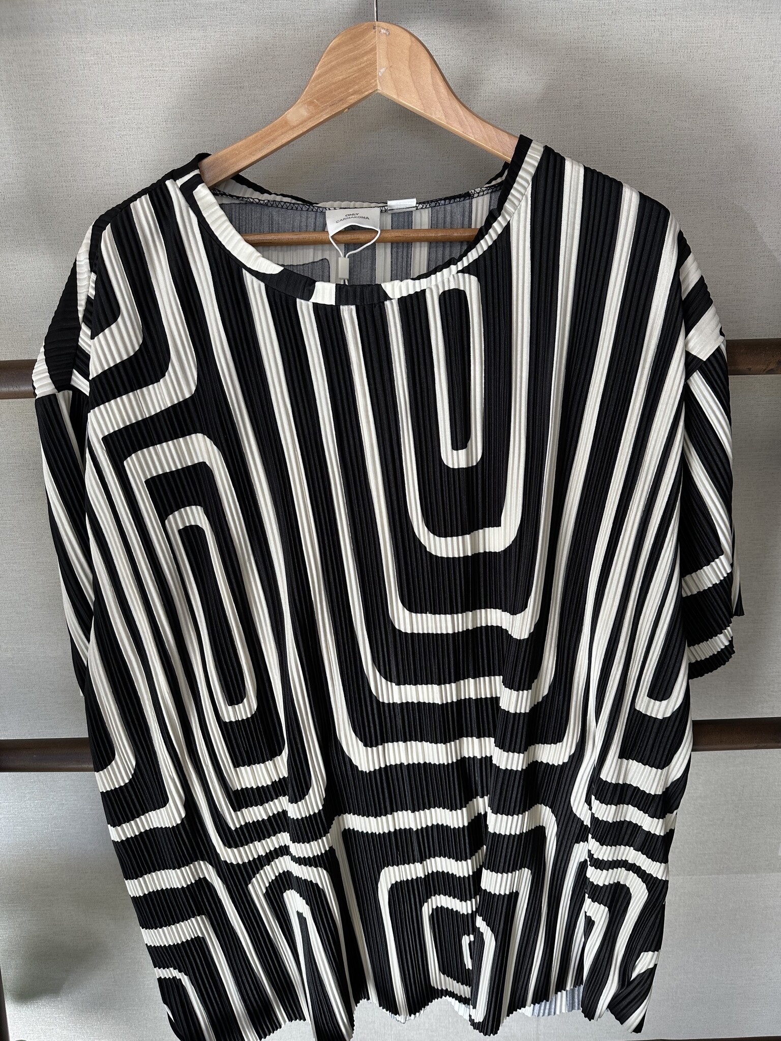 CARRAVENNA S/S PLISSE AOP TOP JRS NOOS Black/Oatmeal Gr