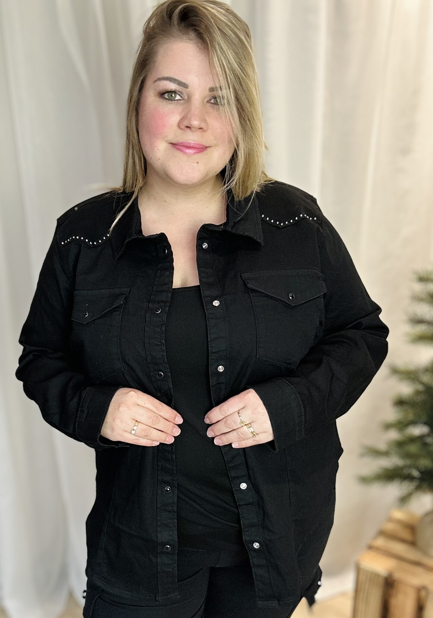 Only Carmakoma- Deze leuke, stoere spijkerblouse is een echte must-have voor je garderobe! De blouse is afgewerkt met trendy studs, wat zorgt voor een edgy, fashionable look. Dankzij de superstretch stof sluit het model prachtig aan en zit het de hele dag comfortabel.