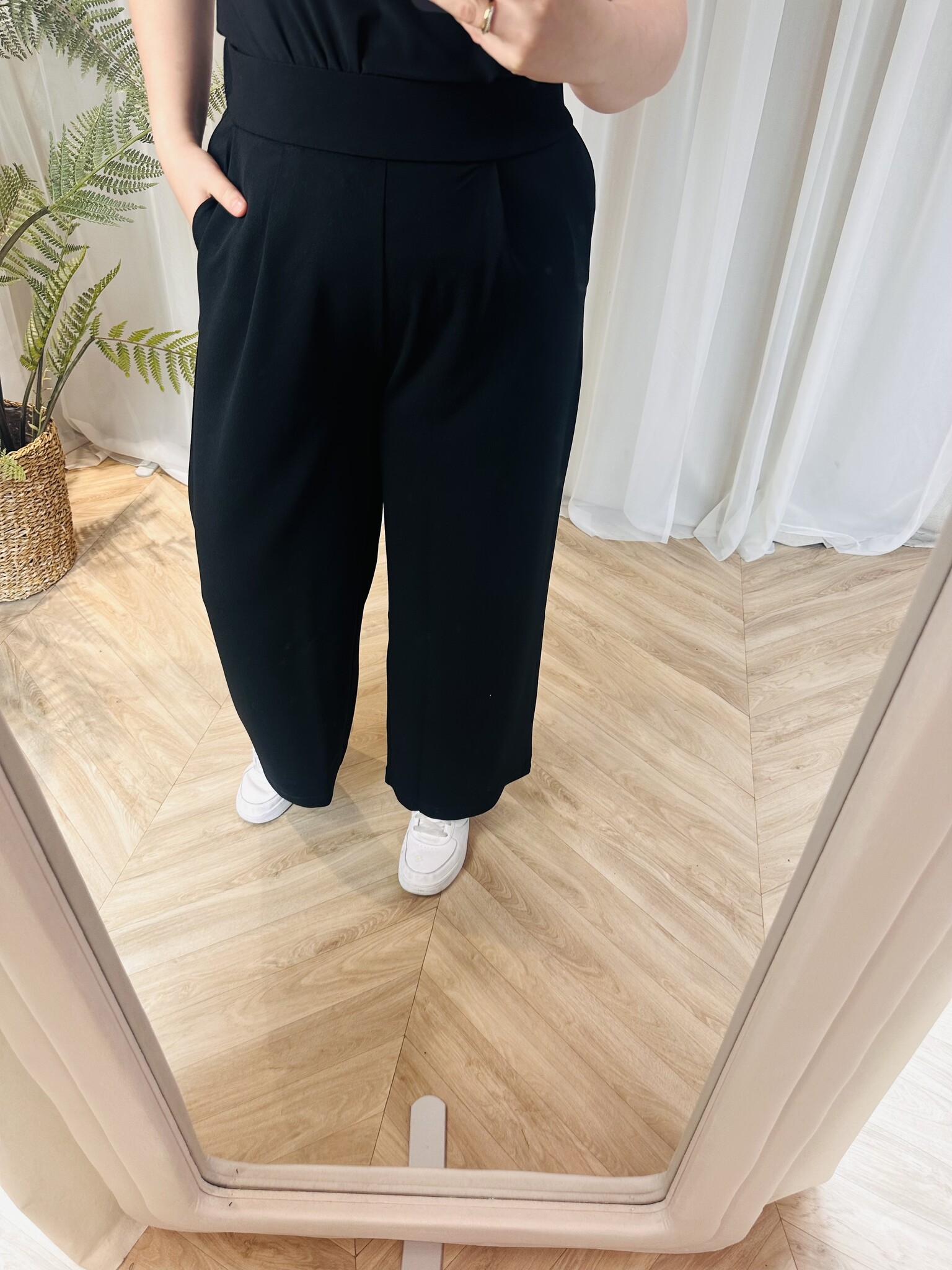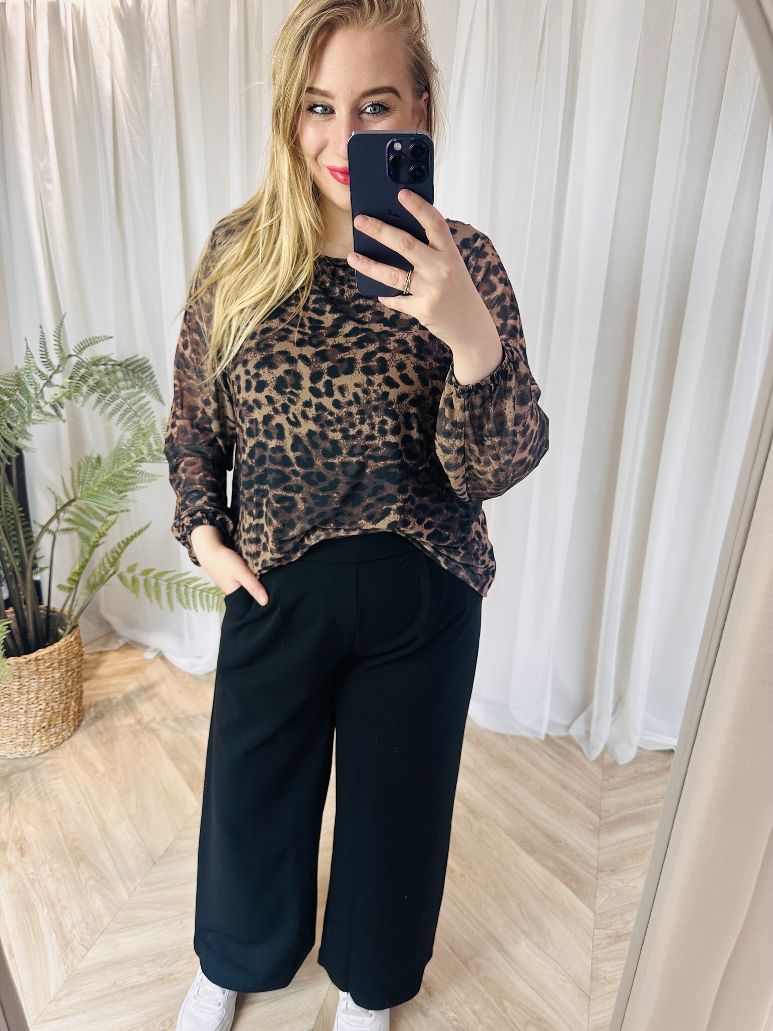 Wijdvallende pasvorm met hoge taille zorgt ervoor dat de broek heerlijk zit.