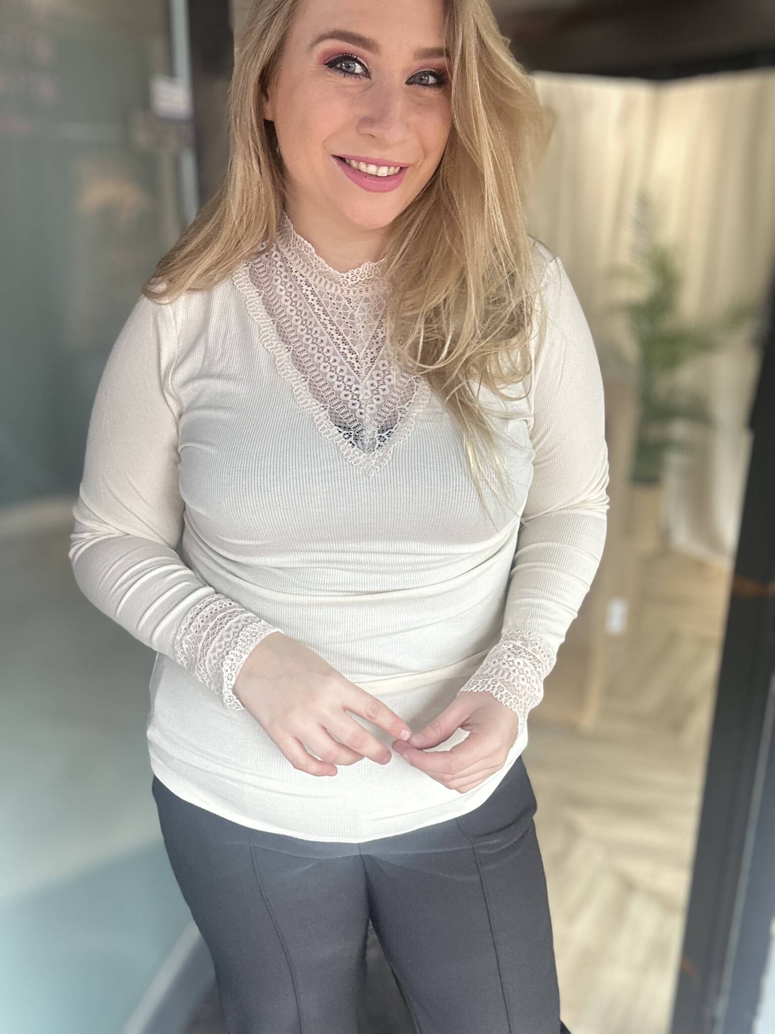 CARTILDE RIB LACE L/S TOP JRS Birch