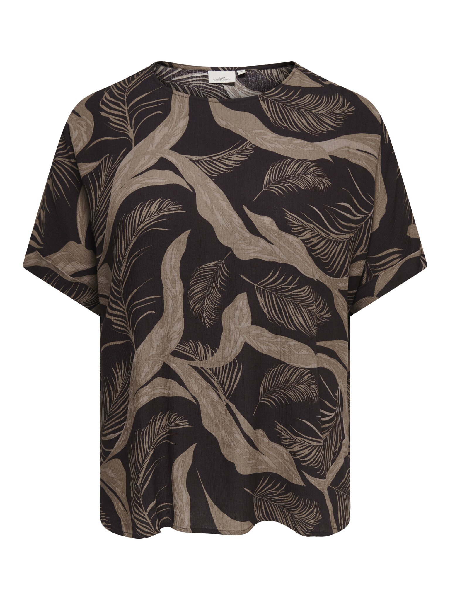 Dit bruine shirt met bladerenprint van Only Carmakoma geeft je outfit een speelse en stijlvolle uitstraling. Het shirt heeft een ronde hals, korte mouwen en een losvallende pasvorm. Door de viscose voelt het shirt comfortabel en luchtig aan en valt het zacht. Je combineert dit shirt leuk met een jeans of effen broek en sneakers voor een casual look.