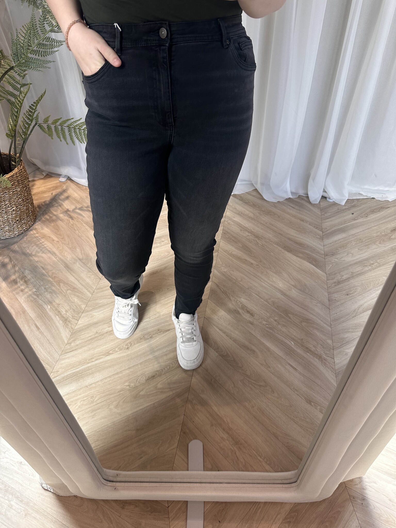 De Carwinnie is een prachtige high-waist jeans in donkergrijs met een subtiele, stoere wassing.