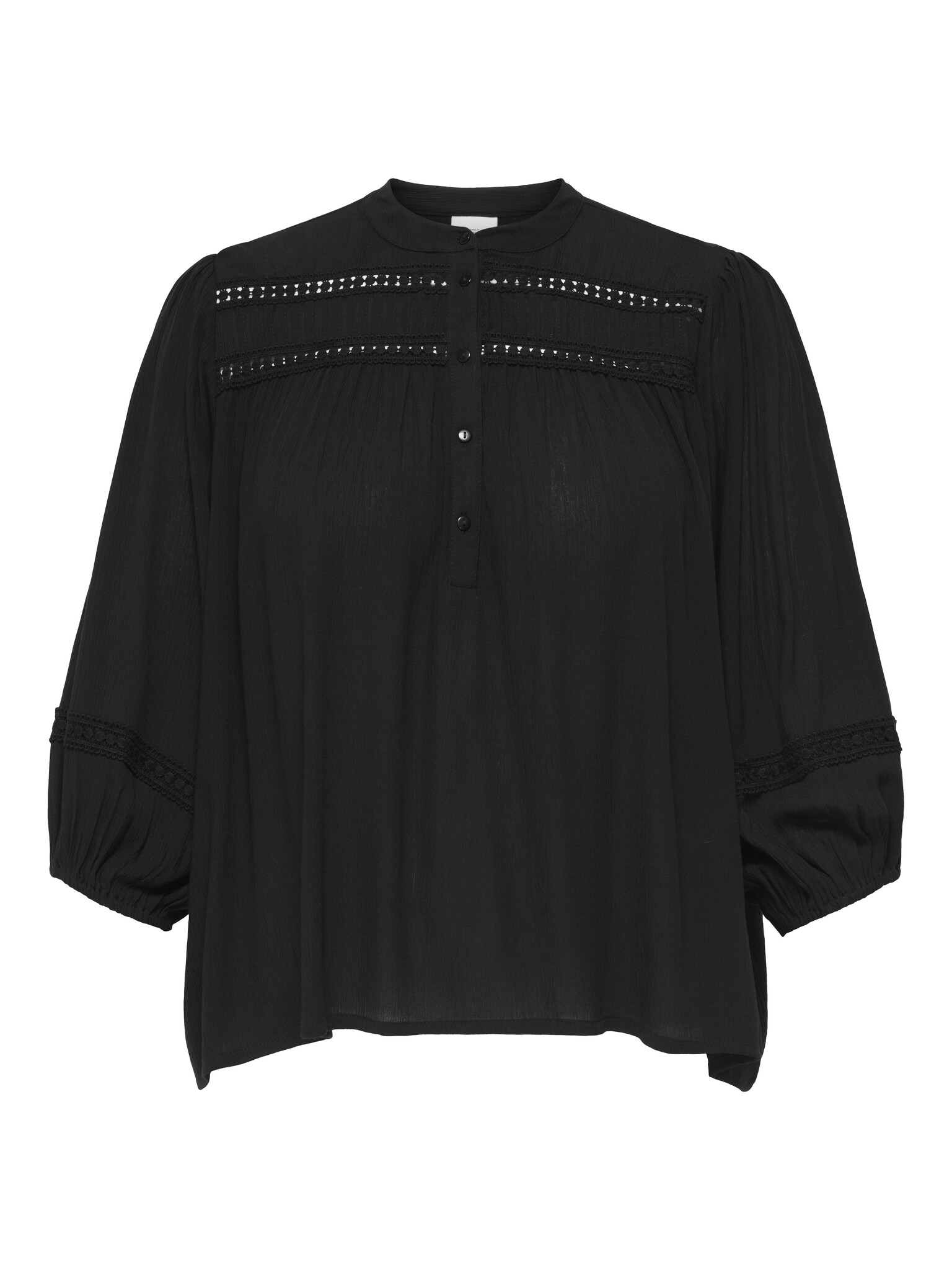 Deze heerlijke blouse van ONLY Carmakoma is een echte toevoeging aan je garderobe. De elastiekjes onderaan de mouwen zorgen voor een speels effect, terwijl de mooie kanten bewerkingen de blouse een elegante, vrouwelijke uitstraling geeft. Een perfect item om zowel casual als chic te dragen!